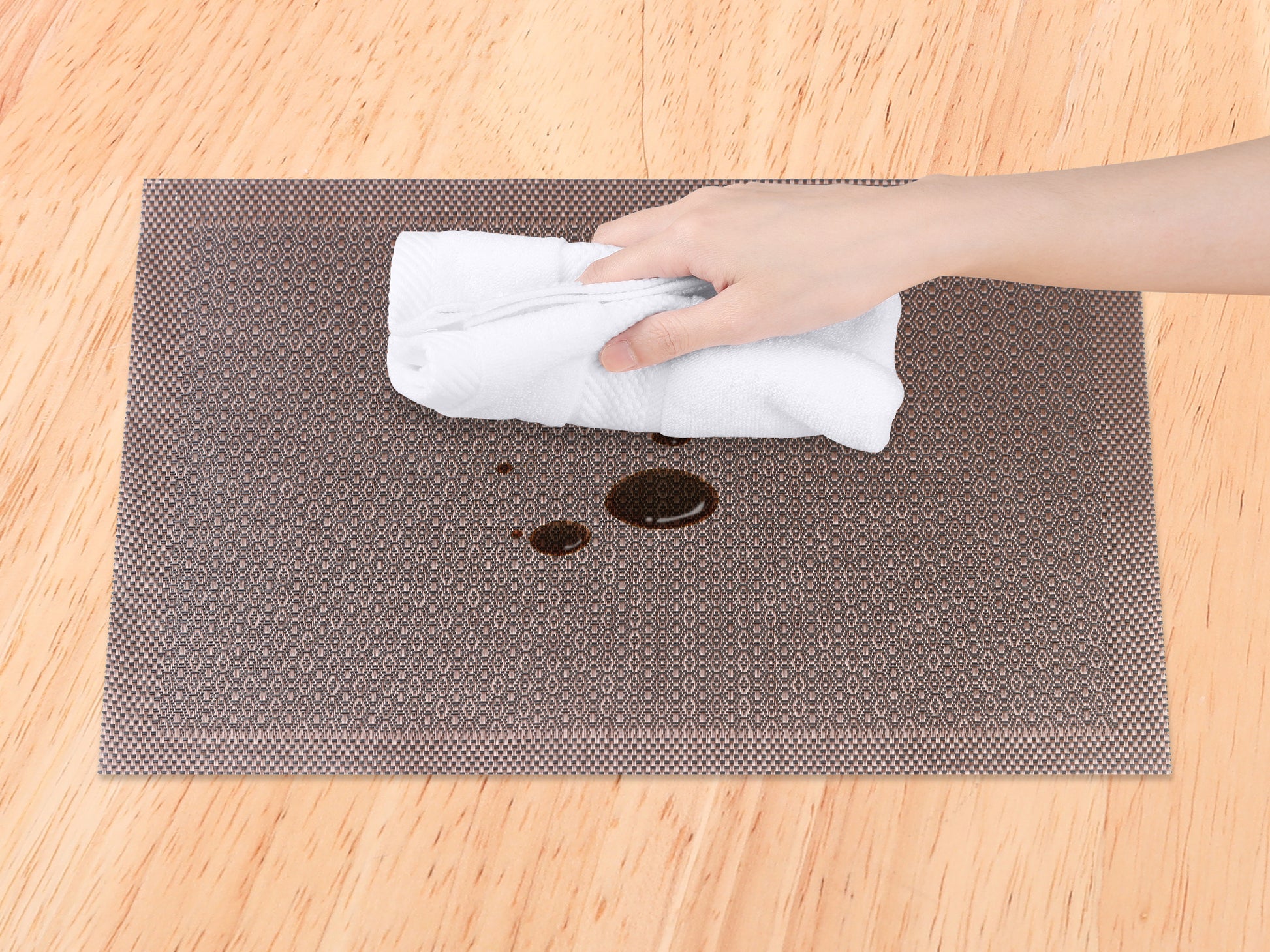 - Estos manteles individuales lavables se pueden usar simplemente limpiándolos con un paño húmedo o una toalla cuando haya residuos, lo que mejorará su experiencia gastronómica.