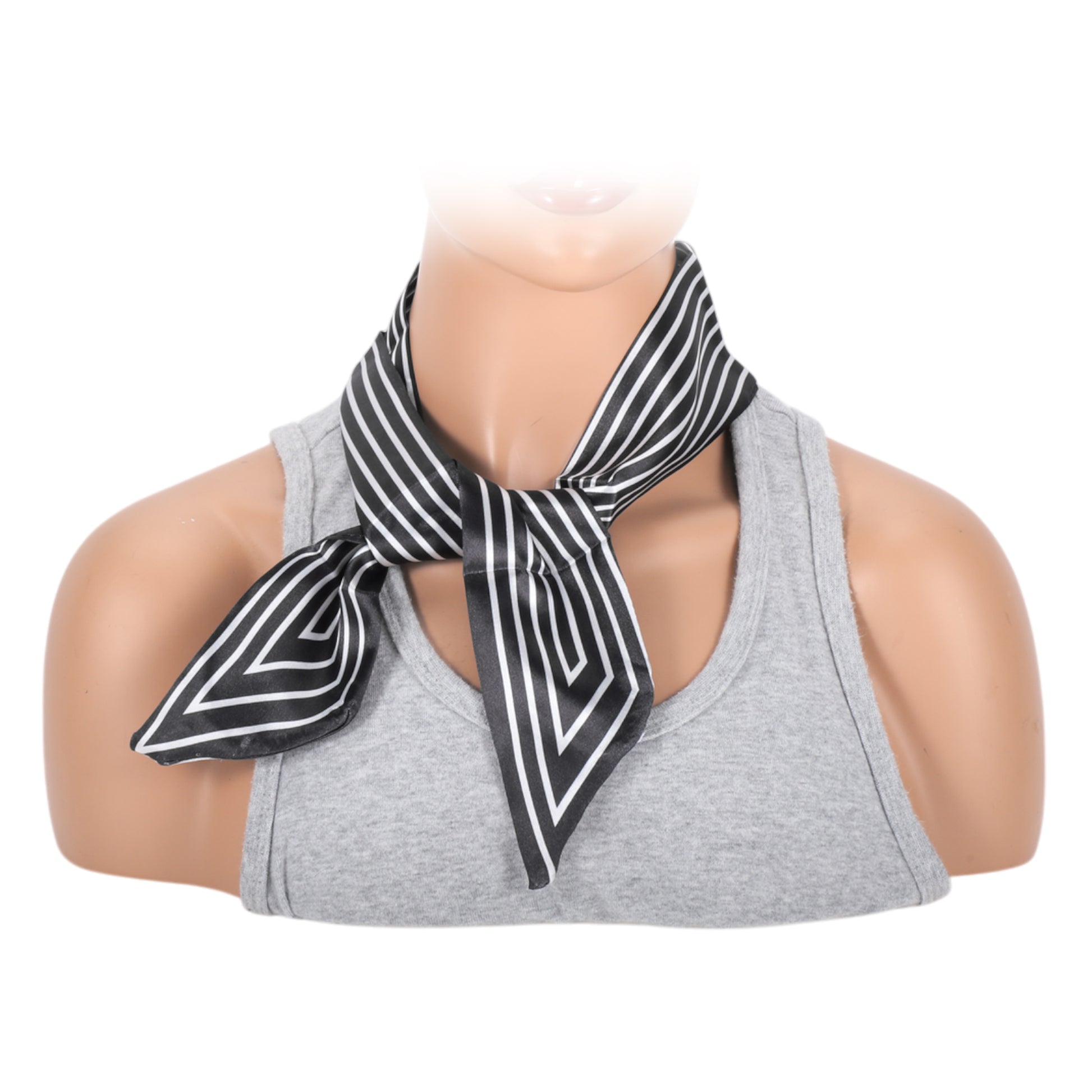 Pañuelo para el cuello de satén con rayas para mujer, color blanco y negro, 1 unidad