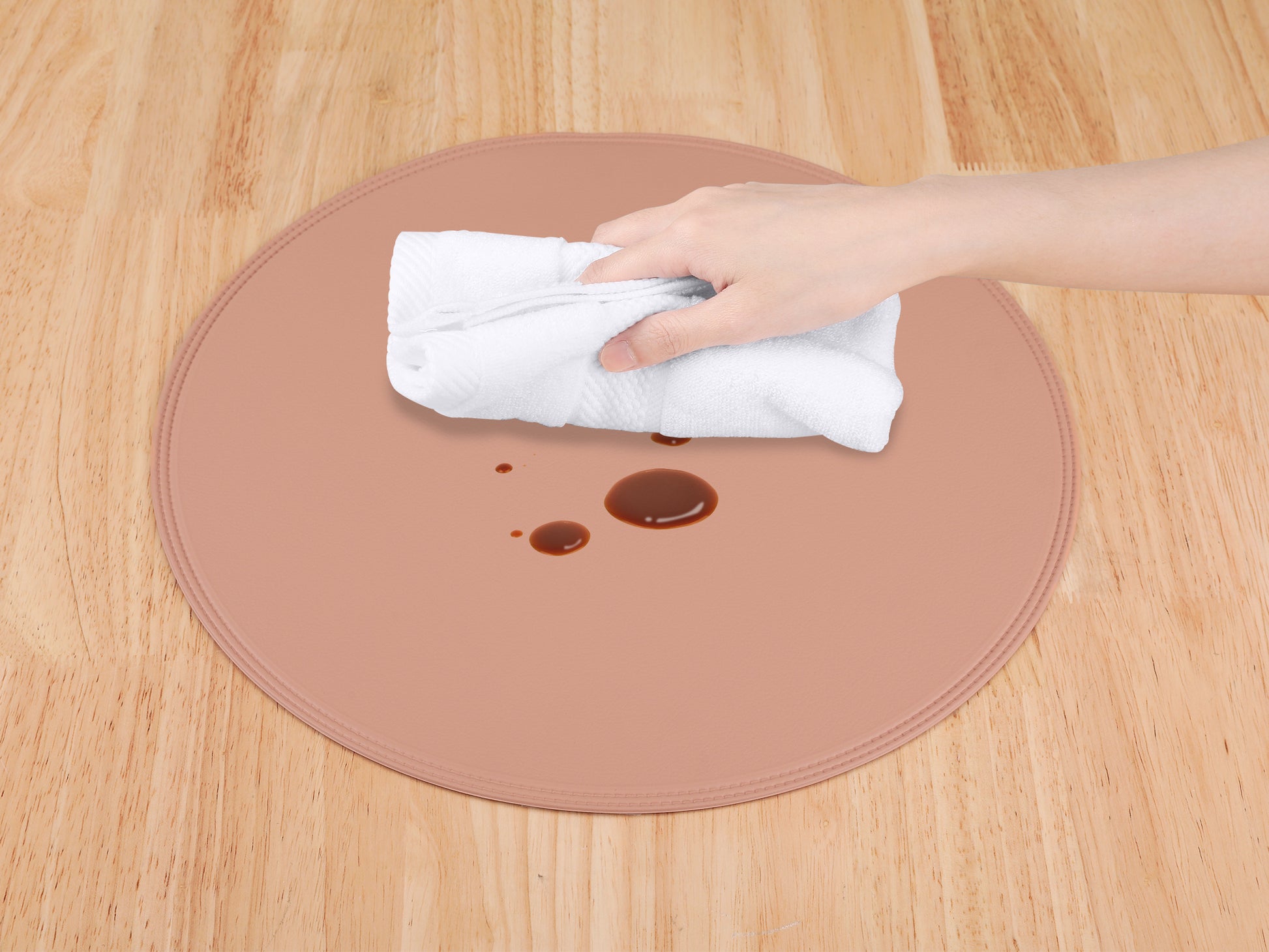 - Estos manteles individuales lavables se pueden usar simplemente limpiándolos con un paño húmedo o una toalla cuando haya residuos, lo que mejorará su experiencia gastronómica.