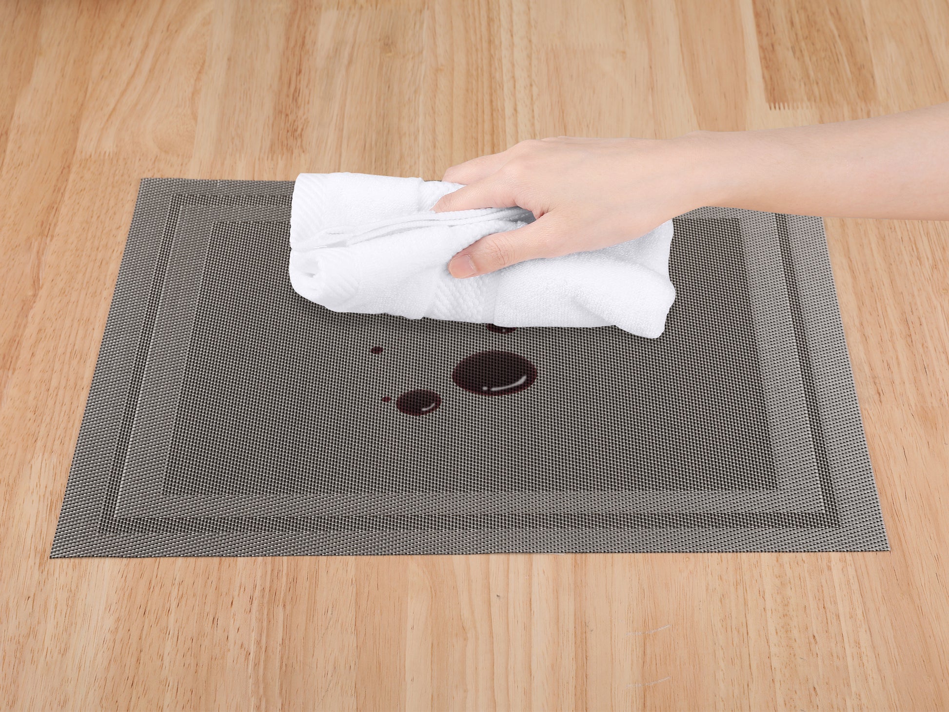 - Estos manteles individuales lavables se pueden usar simplemente limpiándolos con un paño húmedo o una toalla cuando haya residuos, lo que mejorará su experiencia gastronómica.