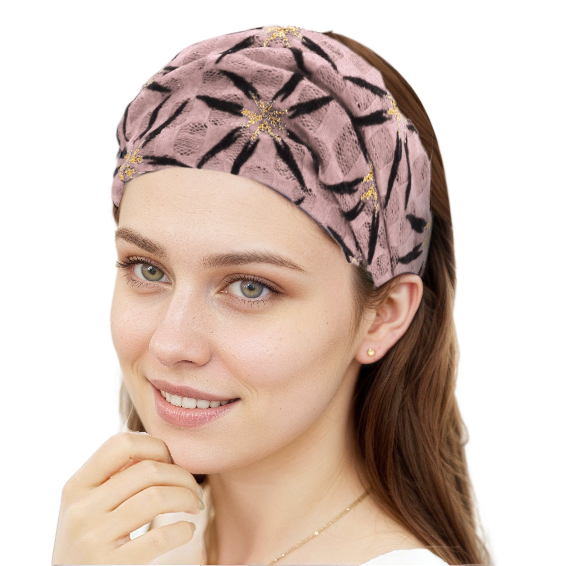 Diadema ancha transpirable de malla con patrón brillante para mujer, color rosa, 1 unidad