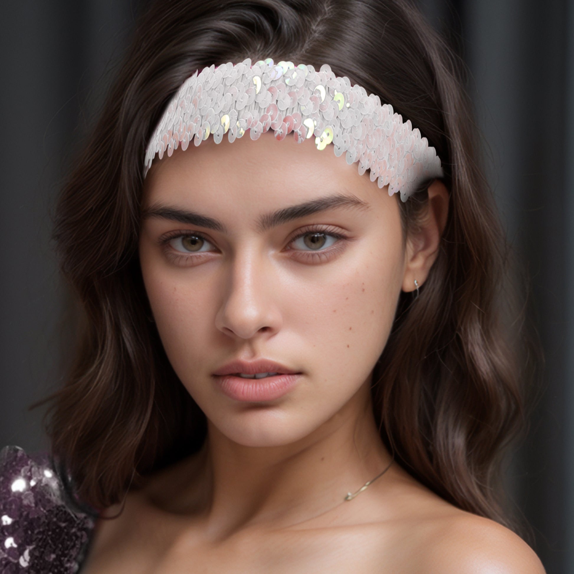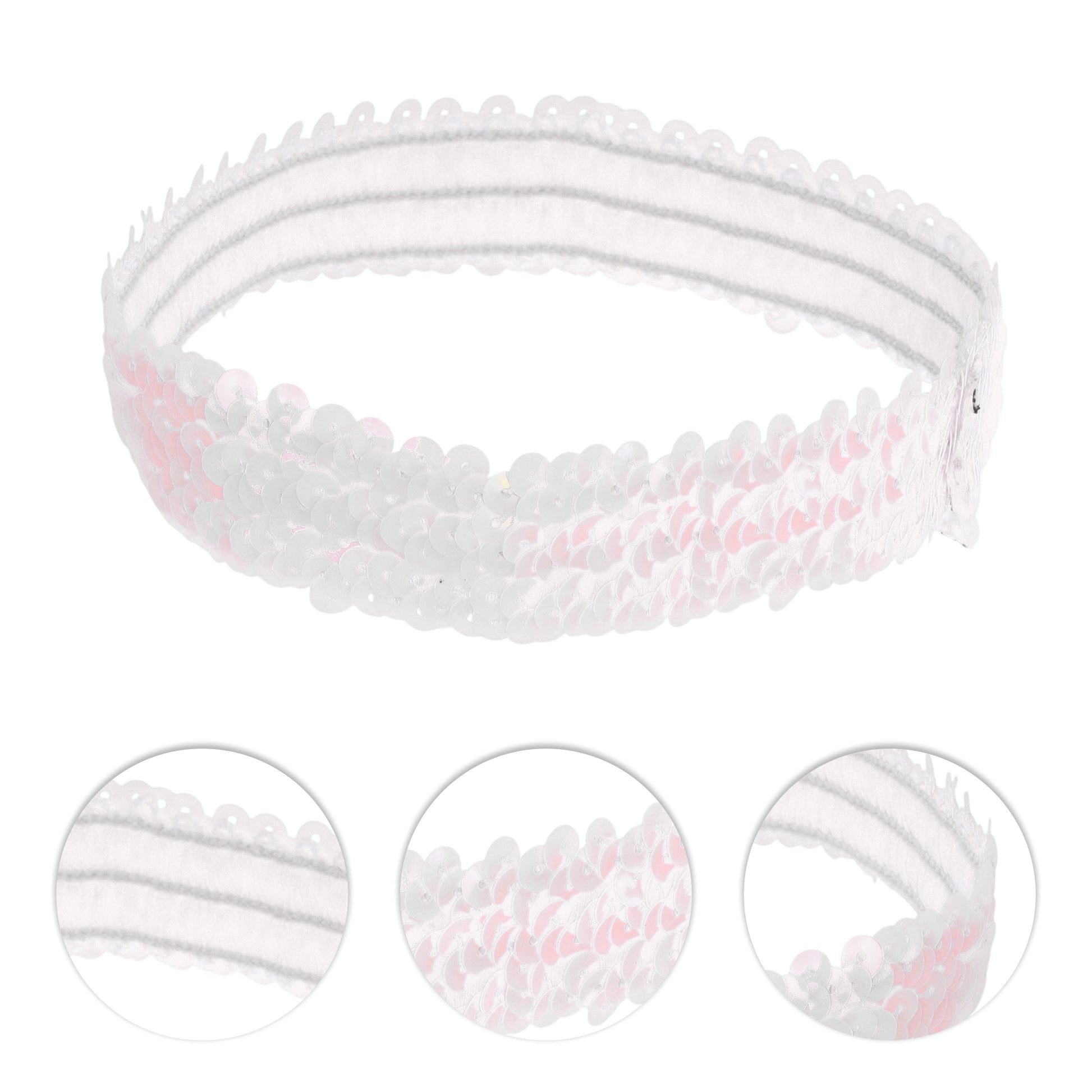 Diademas elásticas con lentejuelas para mujer, color blanco, 1 unidad
