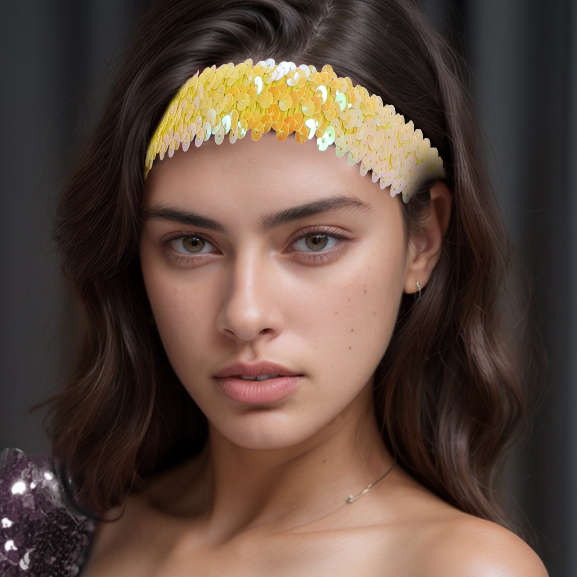 Diademas elásticas con lentejuelas para mujer, color amarillo, 1 unidad