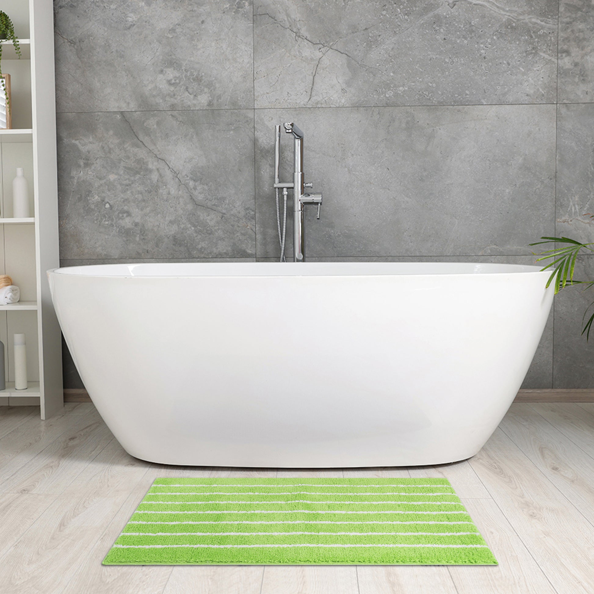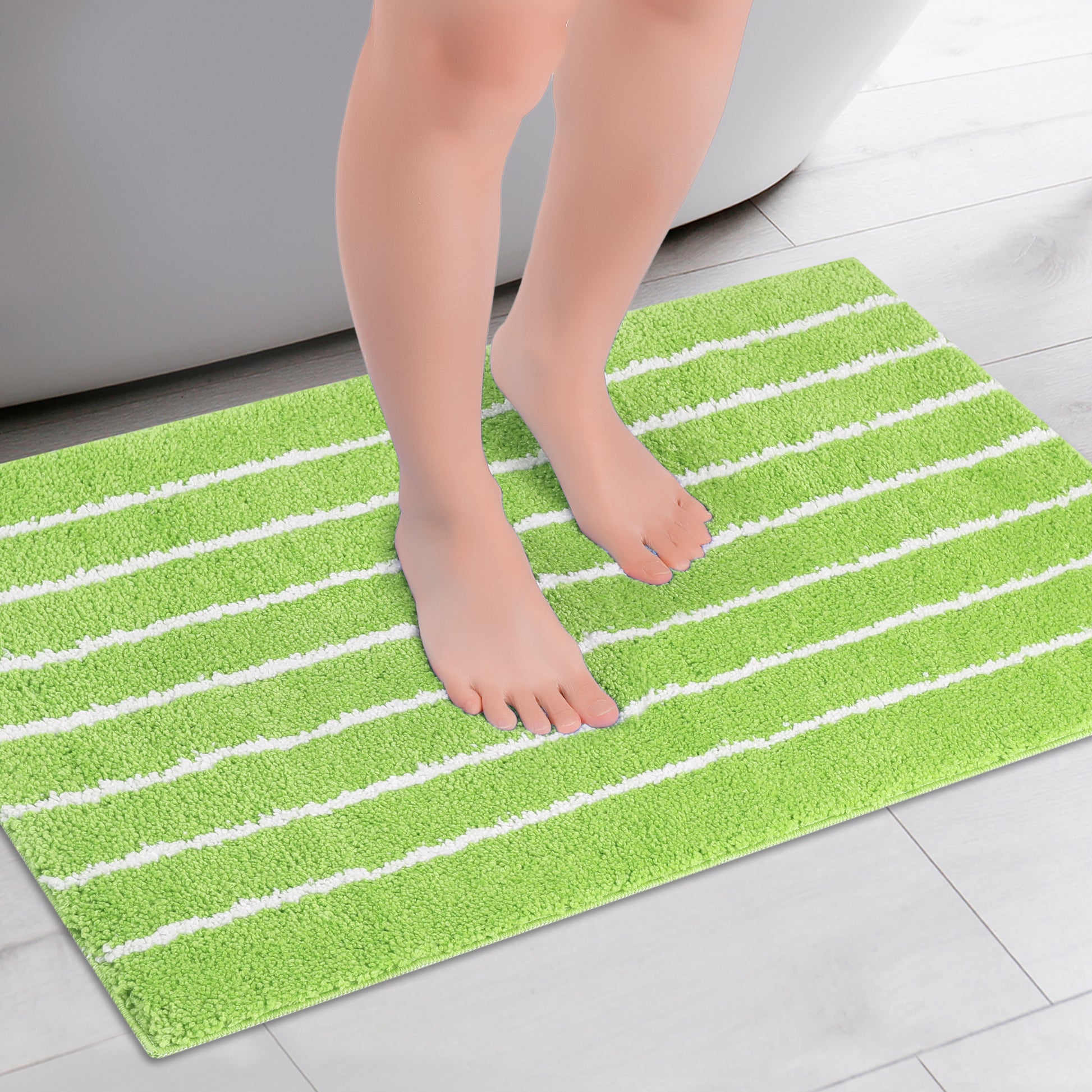 Striped Bathroom Rug, Non-Slip Soft Fluffy Bath Carpet, Water Absorbent Bath Mats