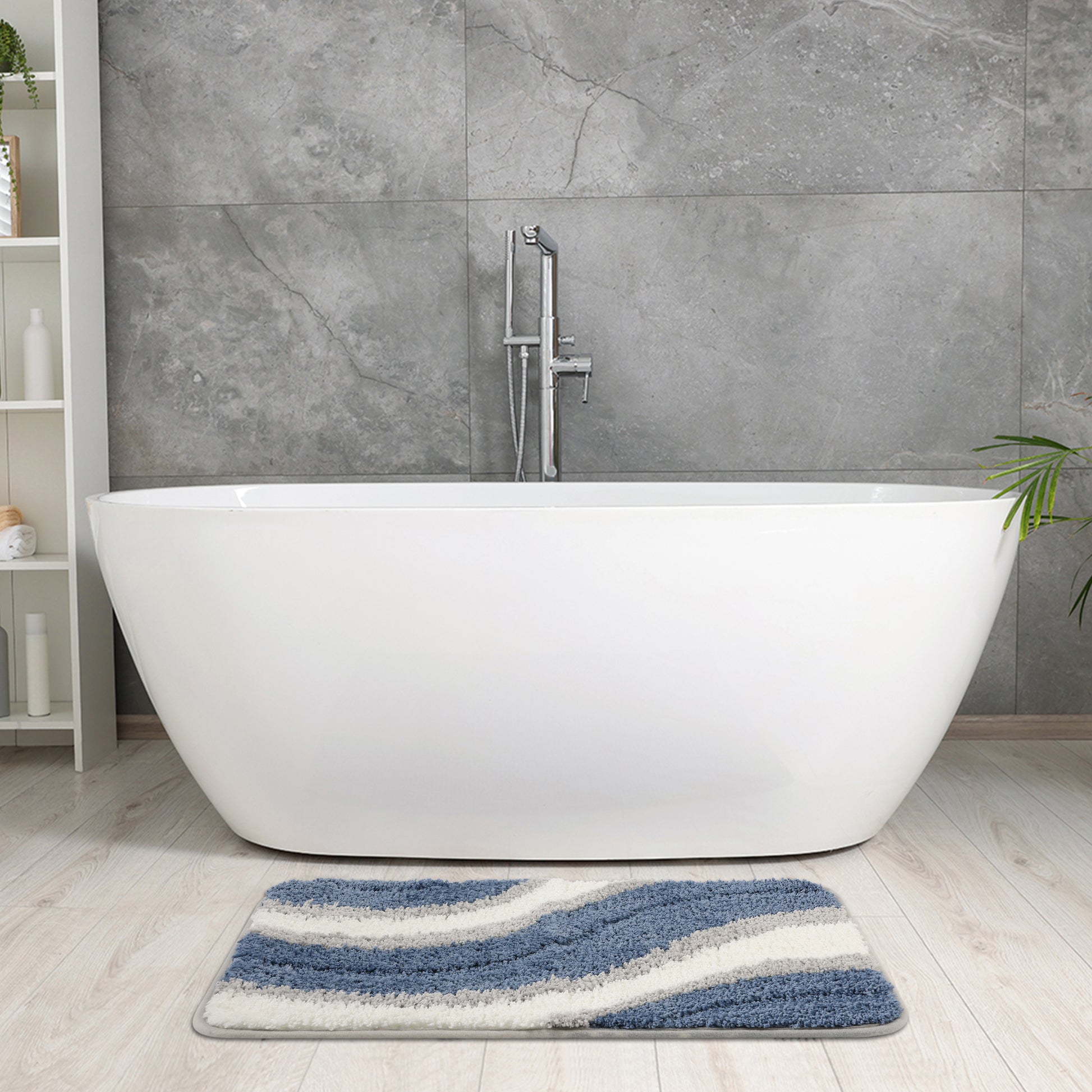 Wavy Stripes Bathroom Rug Mat, Absorbent Bath Rug, Non-Slip Bath Mats for Bathroom Floor