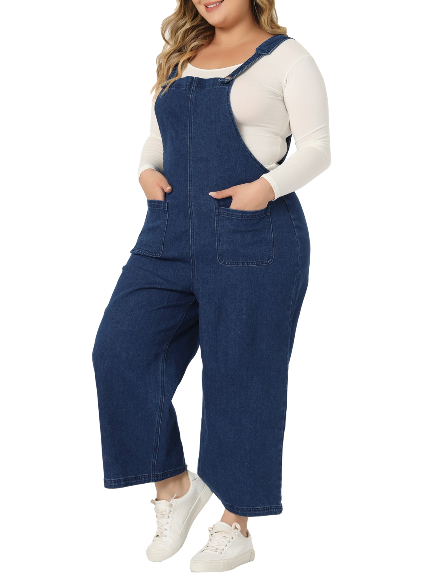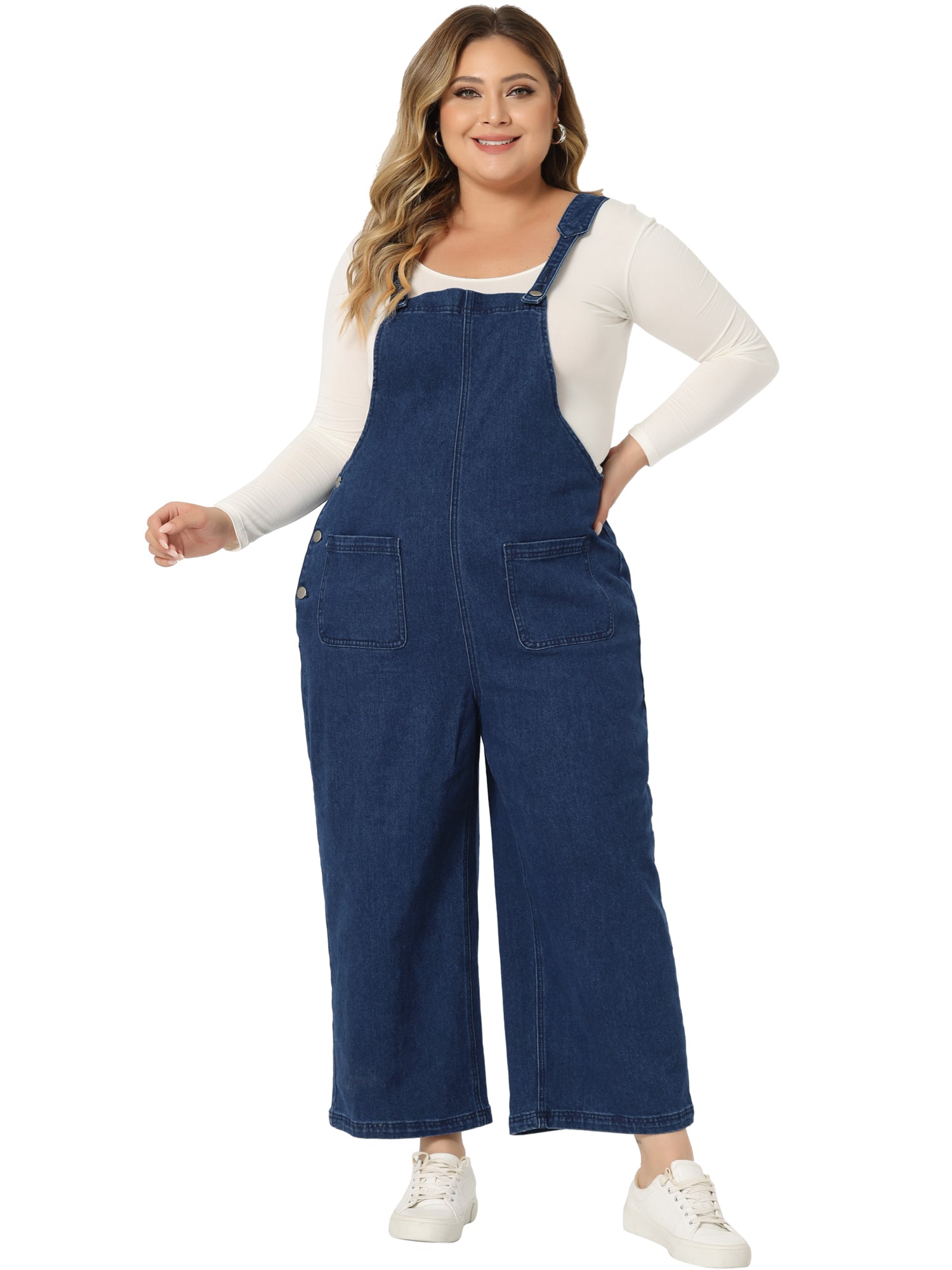 Mono vaquero con pechera de talla grande para mujer, clásico, con tirantes ajustables y bolsillos, pantalones vaqueros