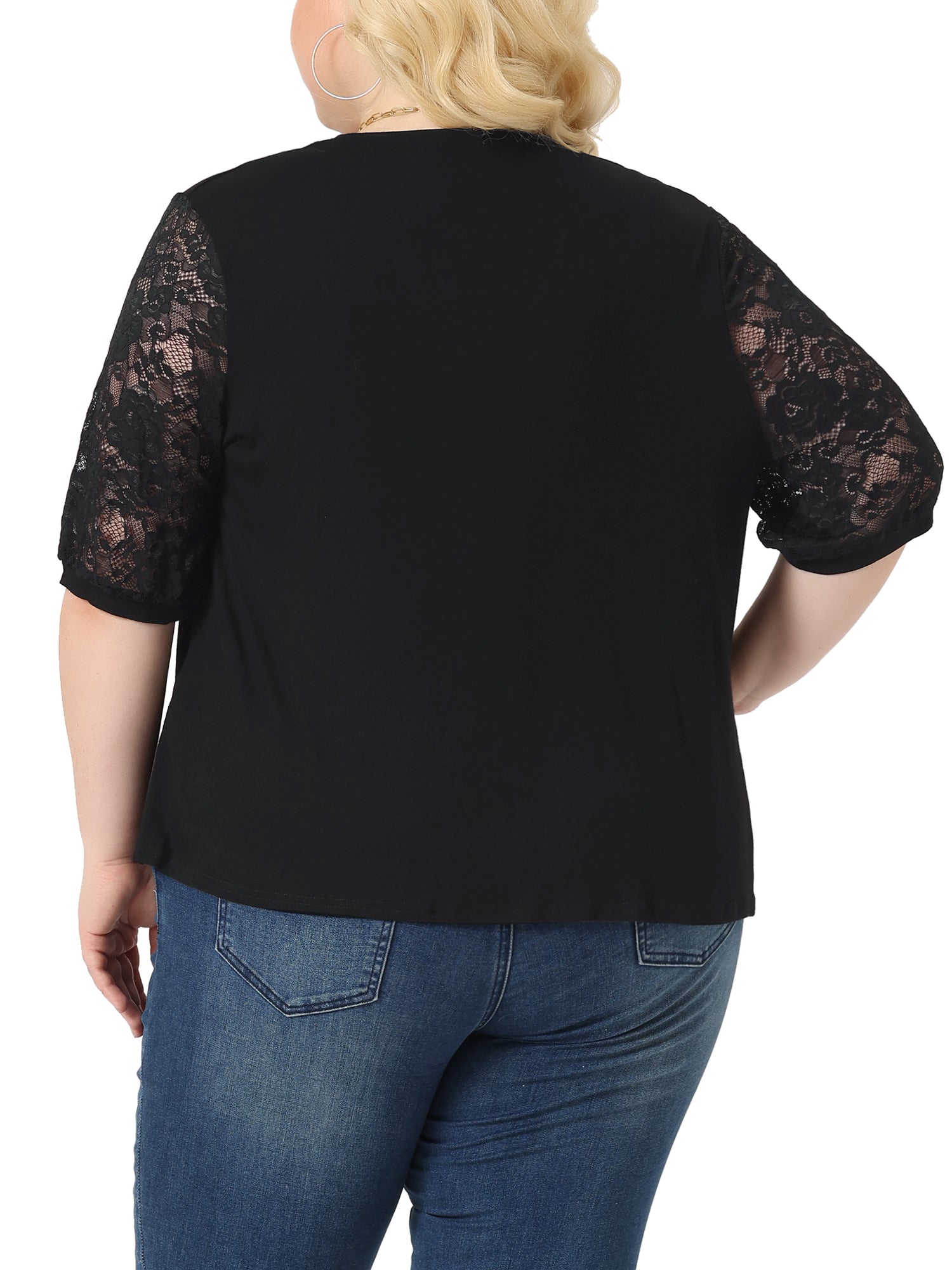 Women Plus Size Elegant Lightweight V Neck Lace Half Sleeve Casual Open Front Cardigans