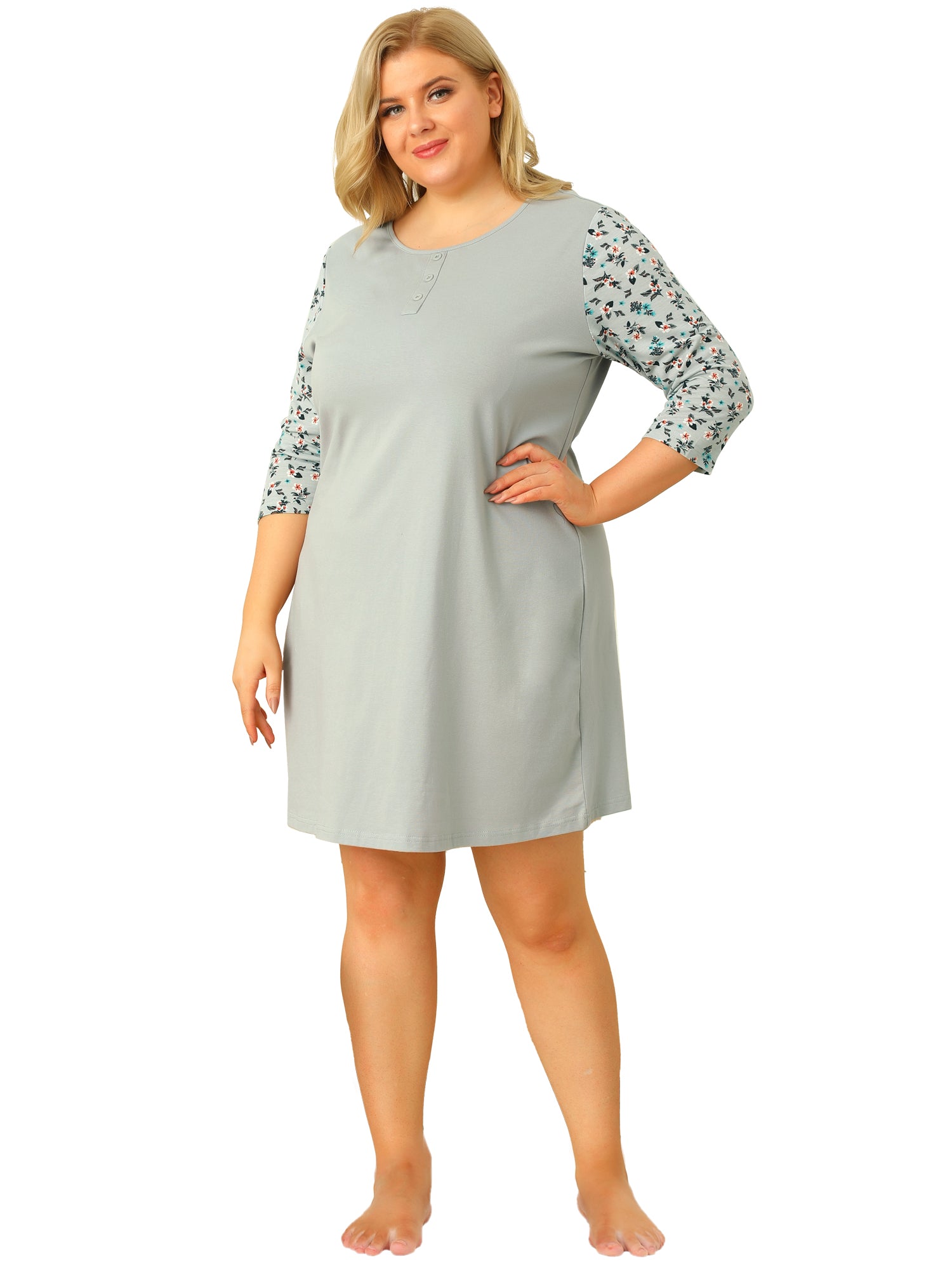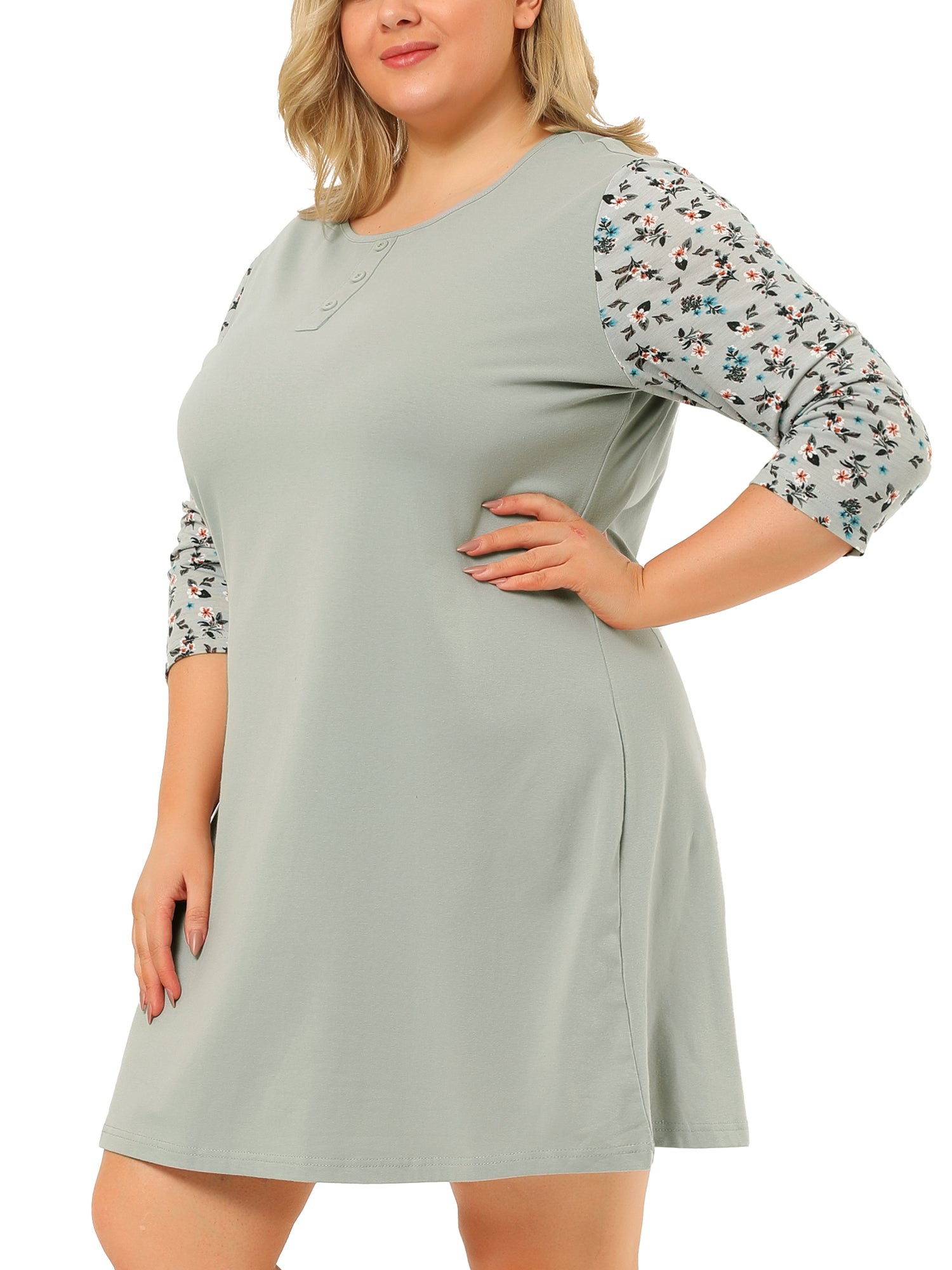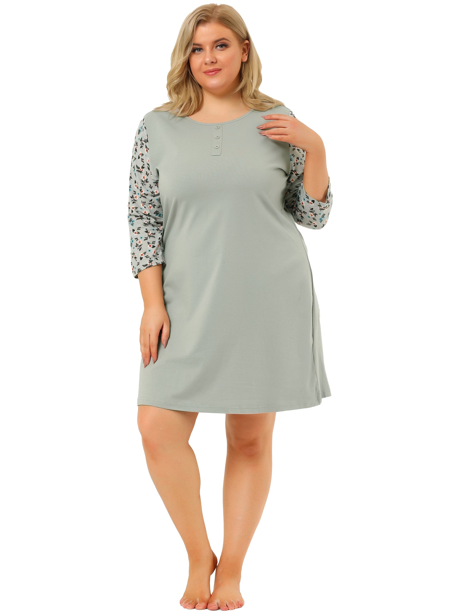 Camisón de talla grande para mujer, estampado floral, manga 3/4, para dormir