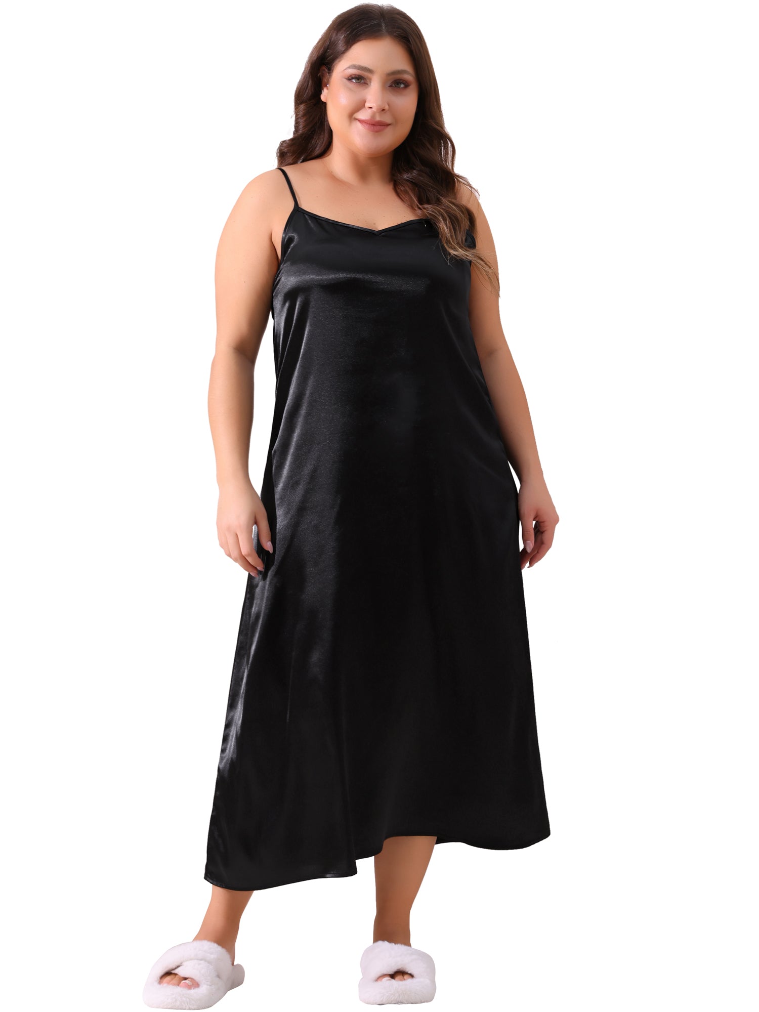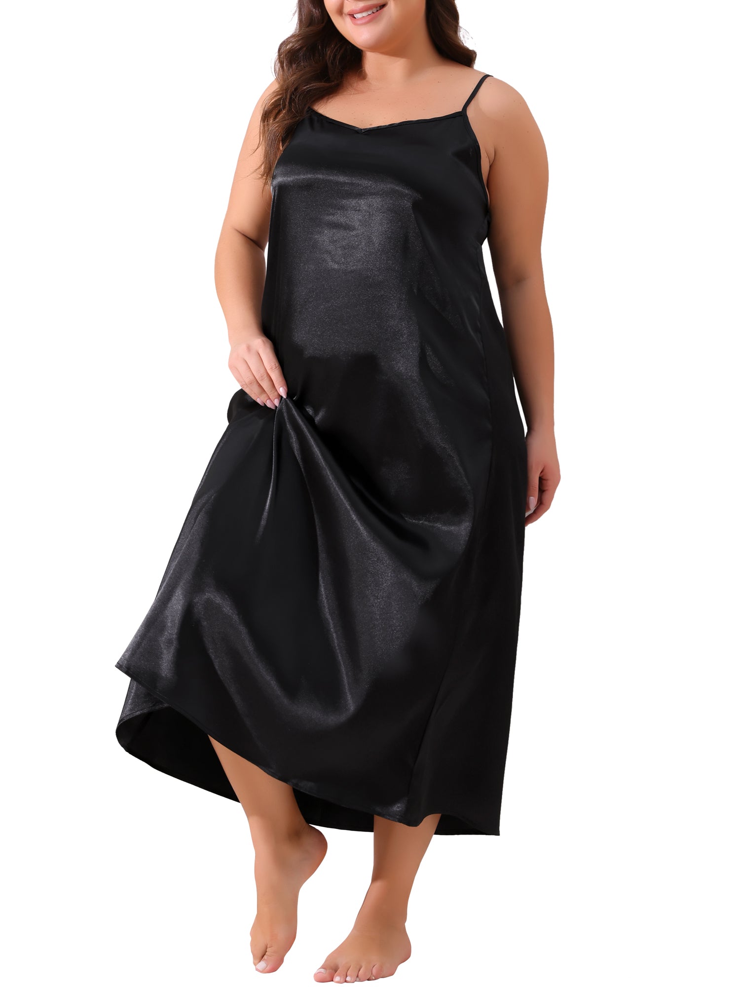 Camisón de satén con cuello en V para mujer, sin mangas, de talla grande, camisón, ropa de dormir