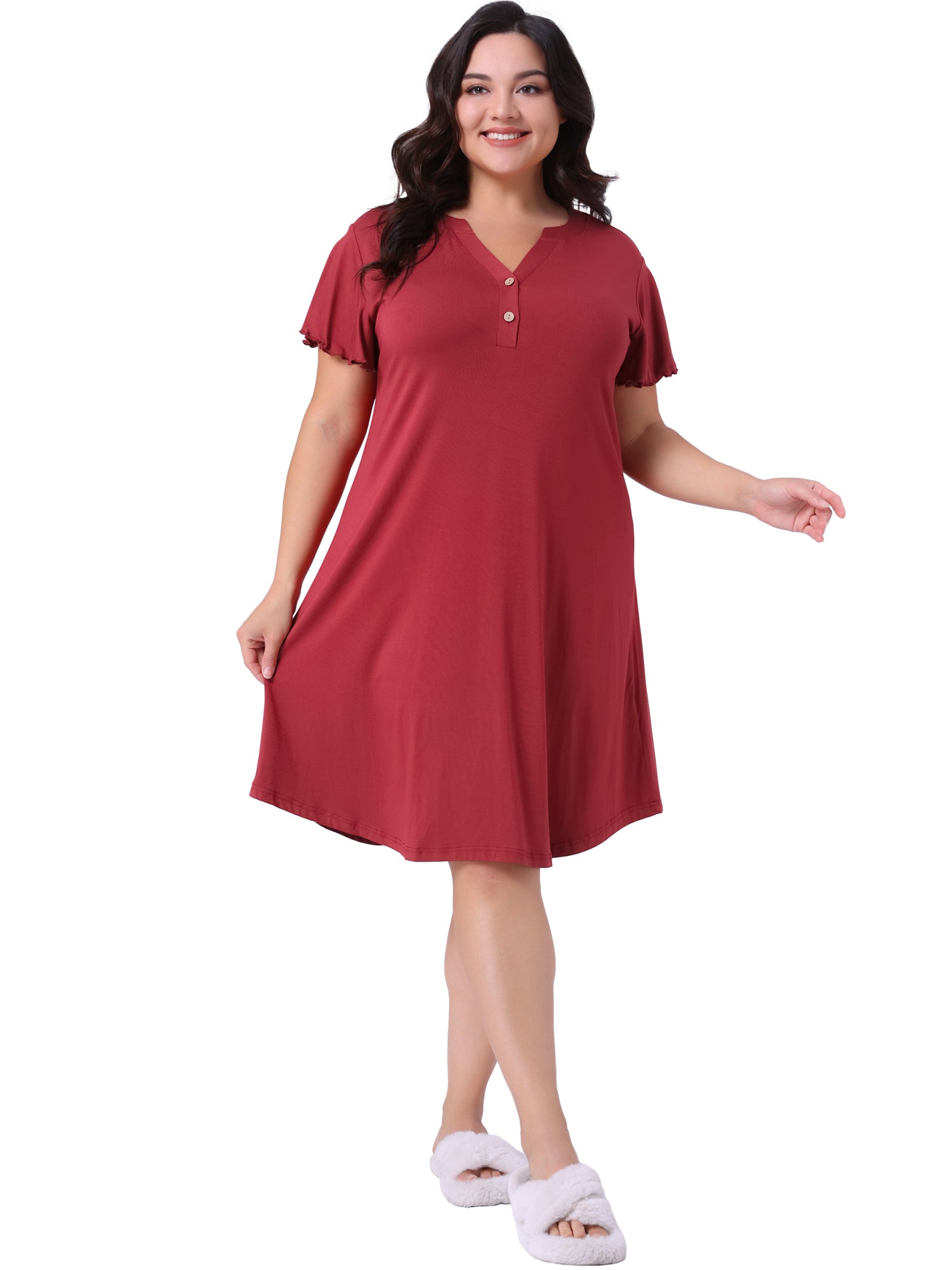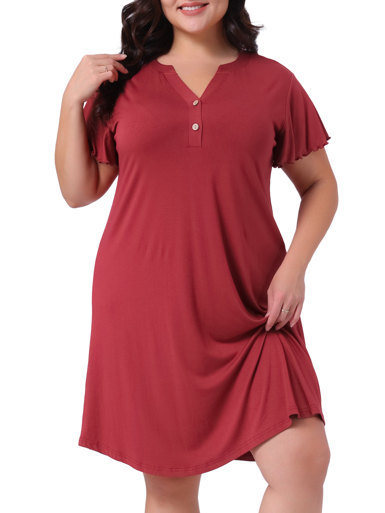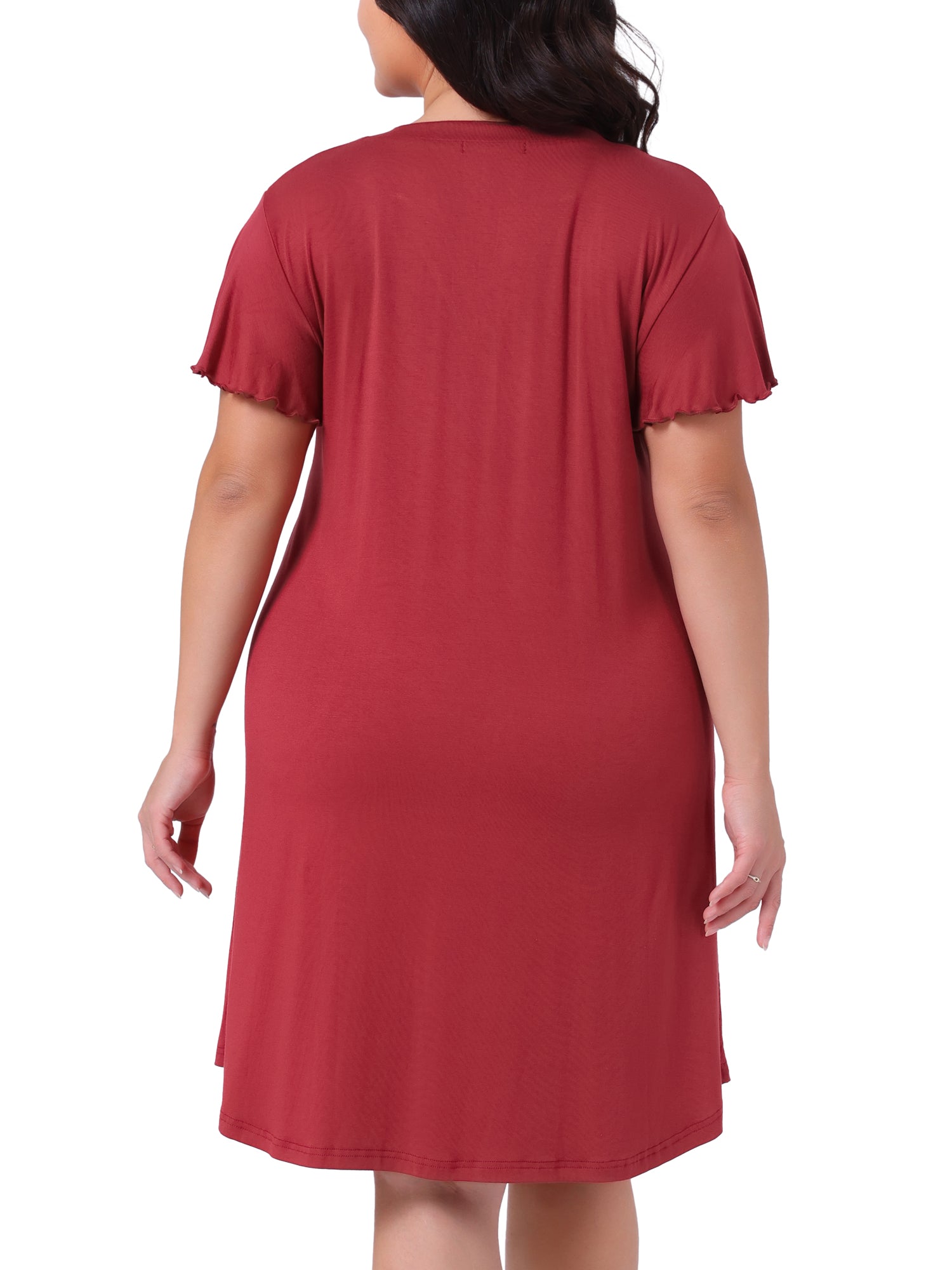 Pijama de talla grande para mujer, camisón de cuello en V con volantes y manga corta, ropa de estar por casa