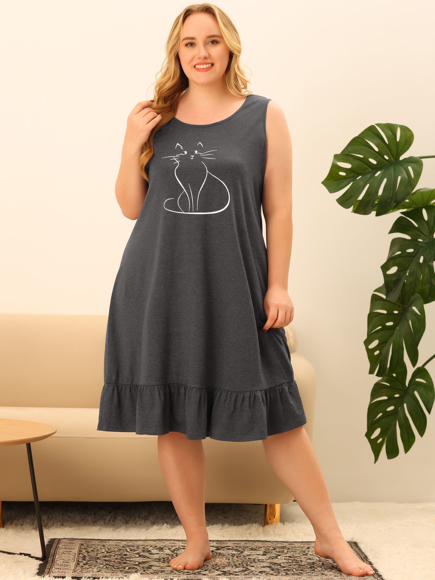 Camisón sin mangas de talla grande para mujer, bonito pijama de gato, ropa de dormir, camisón, ropa de estar en casa