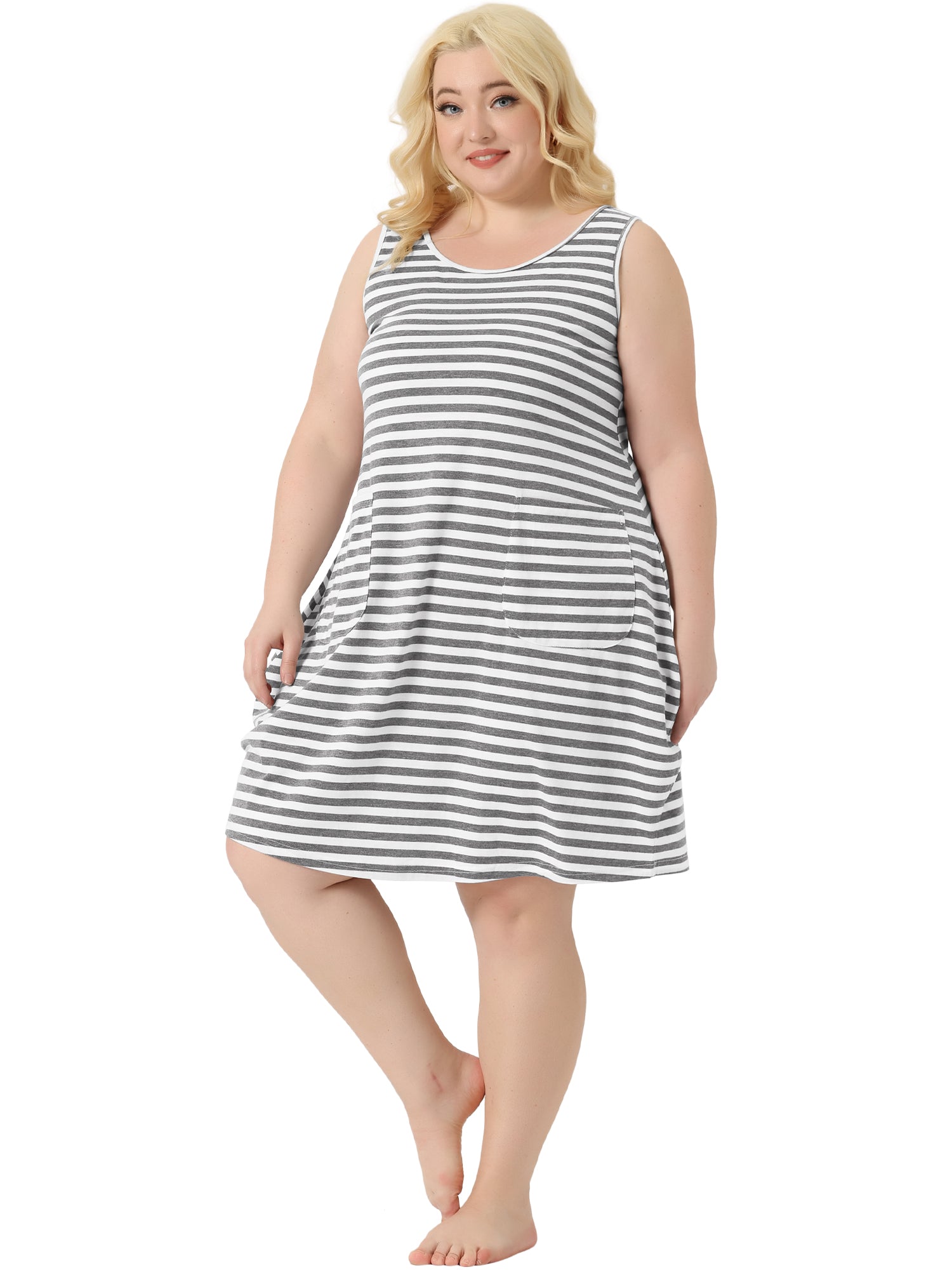 Camisón de dormir sin mangas de talla grande para mujer, camisón de pijama con bolsillos