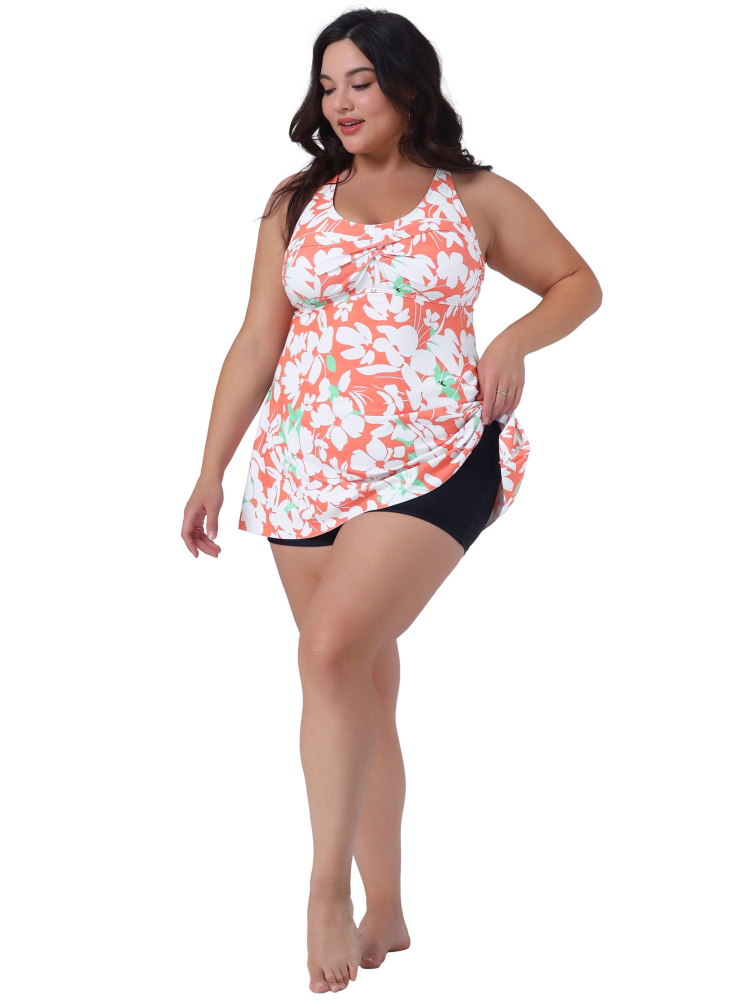 Traje de baño tankini de talla grande para mujer, 2 piezas, cuello en V, floral, blusa holgada con pantalones cortos, traje de baño