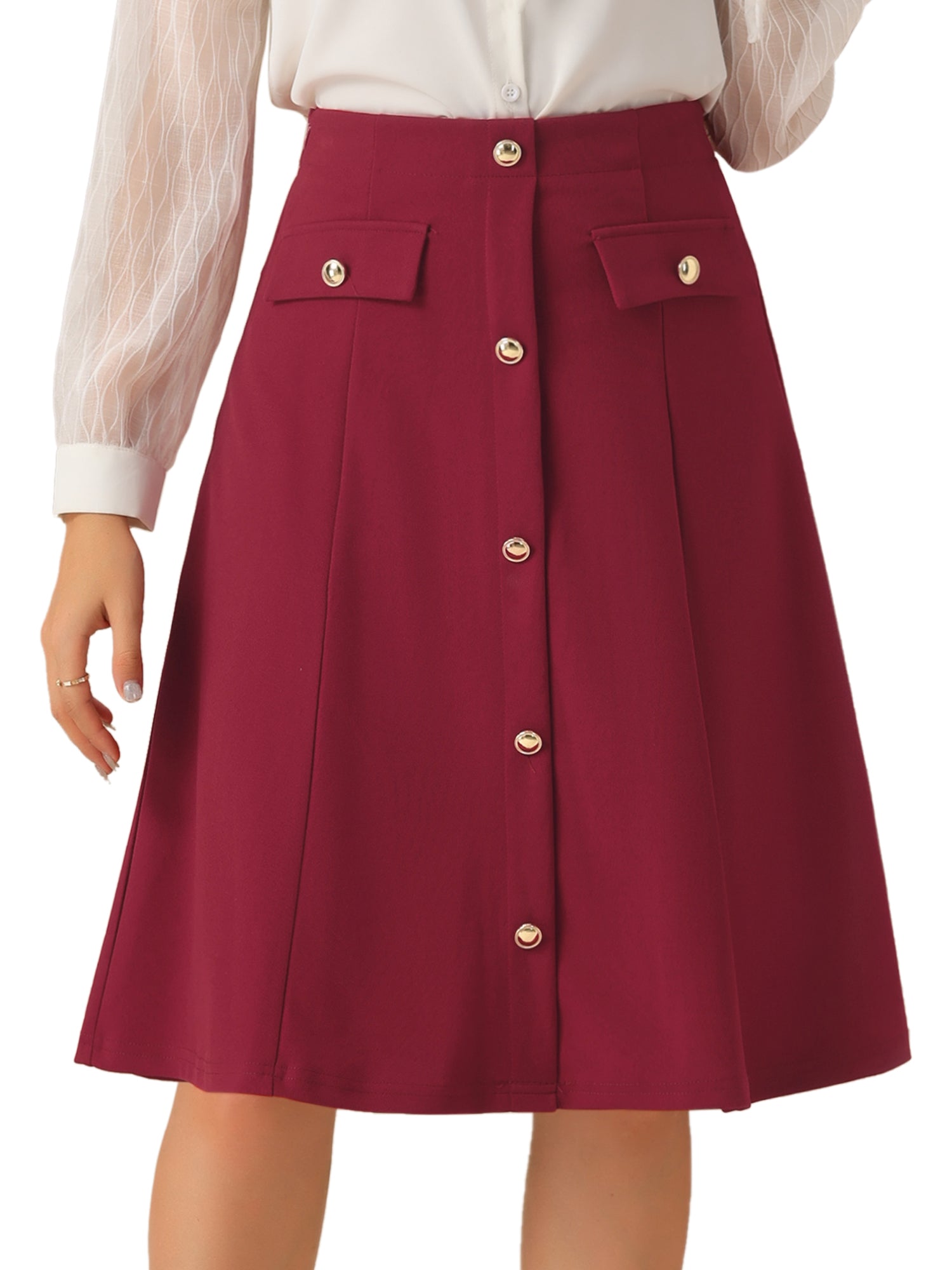 Falda formal de trabajo con botones delanteros y corte A hasta la rodilla para mujer