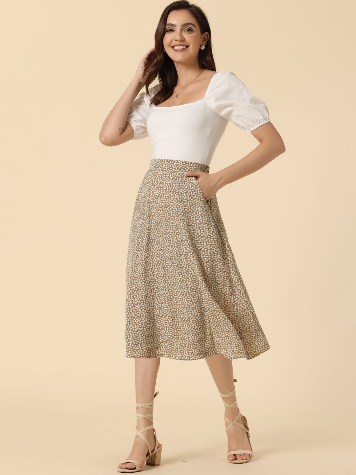 Falda midi de gasa con estampado floral para mujer, corte A, verano