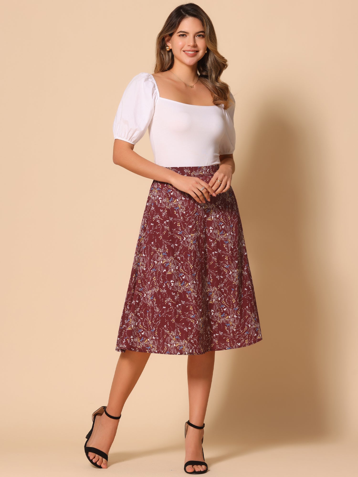 Falda midi de gasa con estampado floral para mujer, corte A, verano
