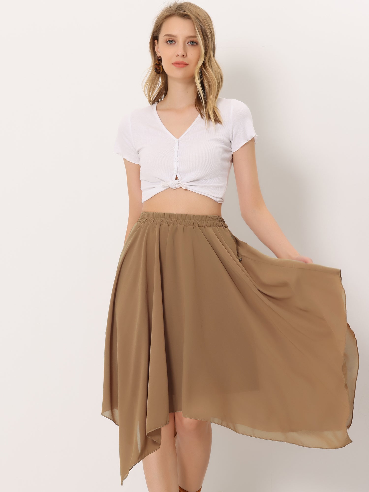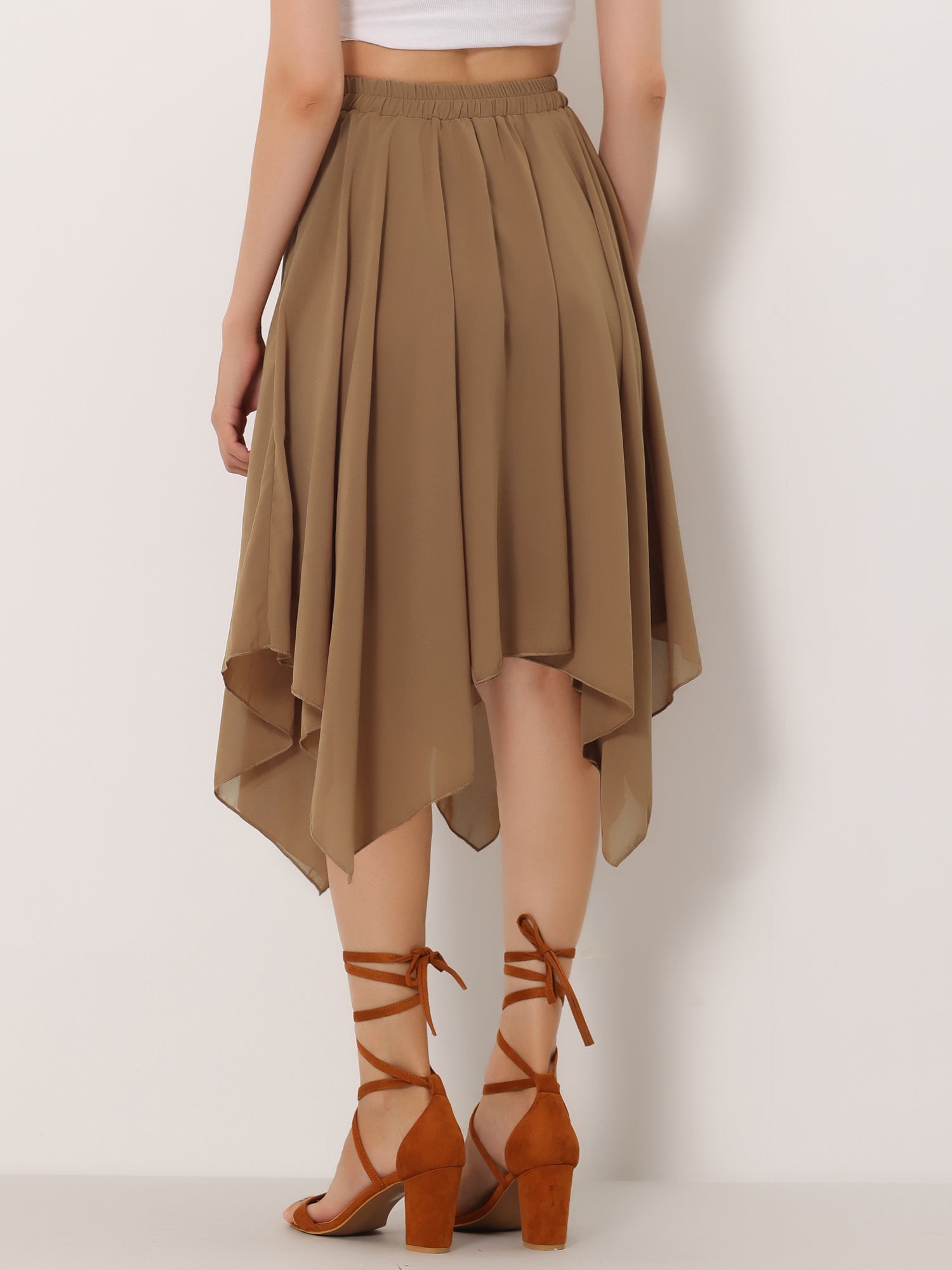 Falda midi de gasa con cintura elástica y dobladillo asimétrico para mujer, estilo vintage, estilo pañuelo