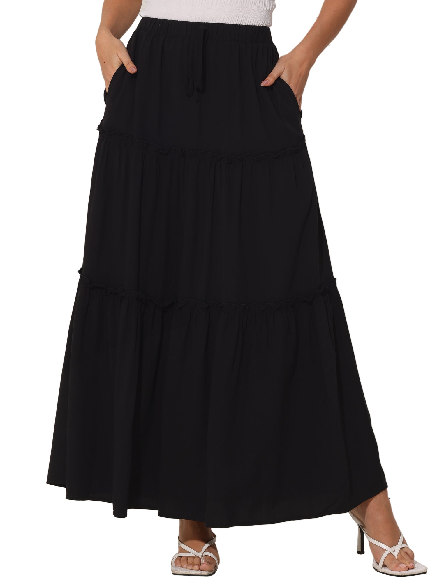 Falda larga bohemia para mujer, con cintura elástica, fluida, corte A, con capas y bolsillos.