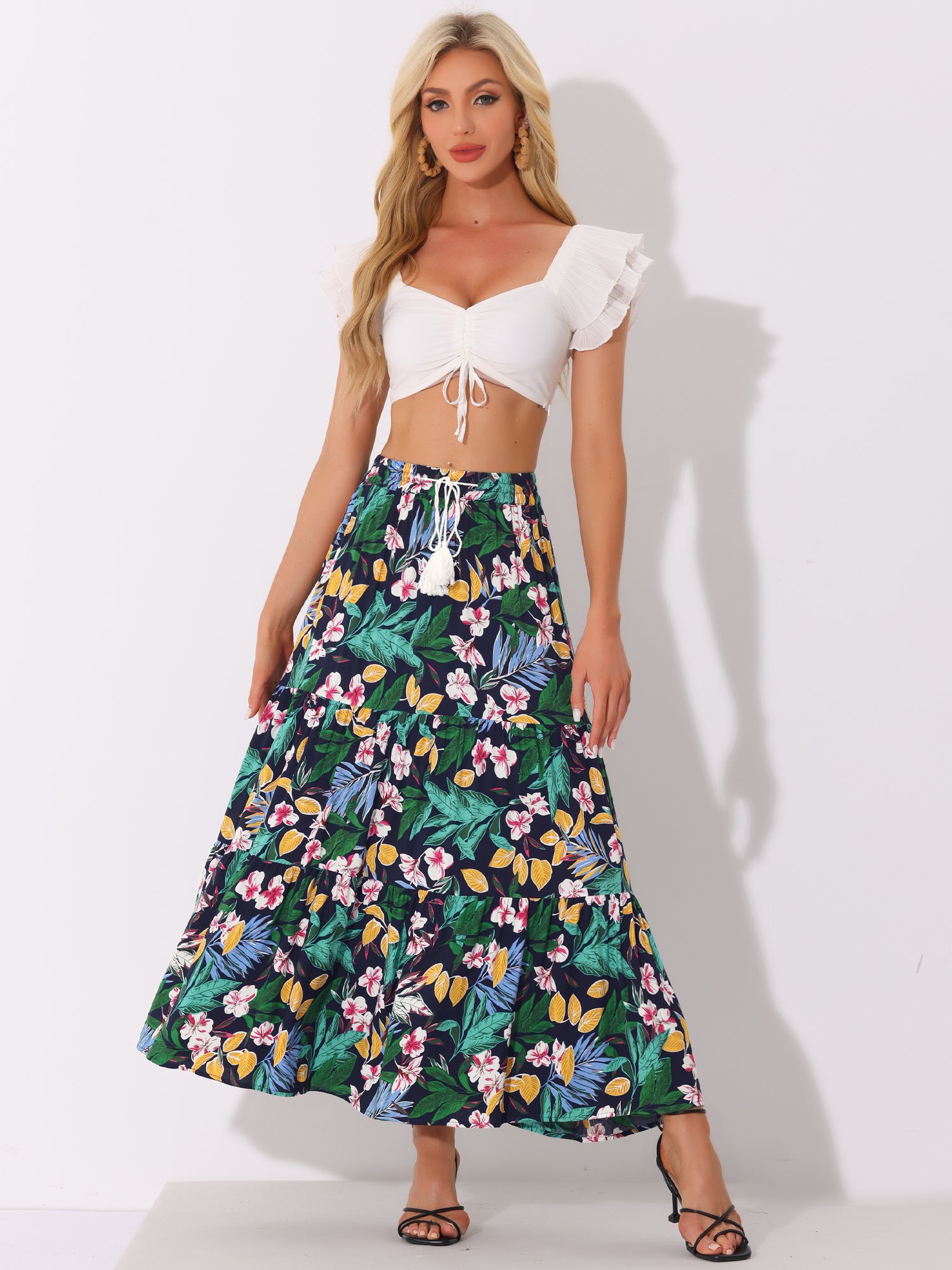Falda bohemia de verano para mujer, con borlas, floral, bohemia, cintura elástica, maxifalda