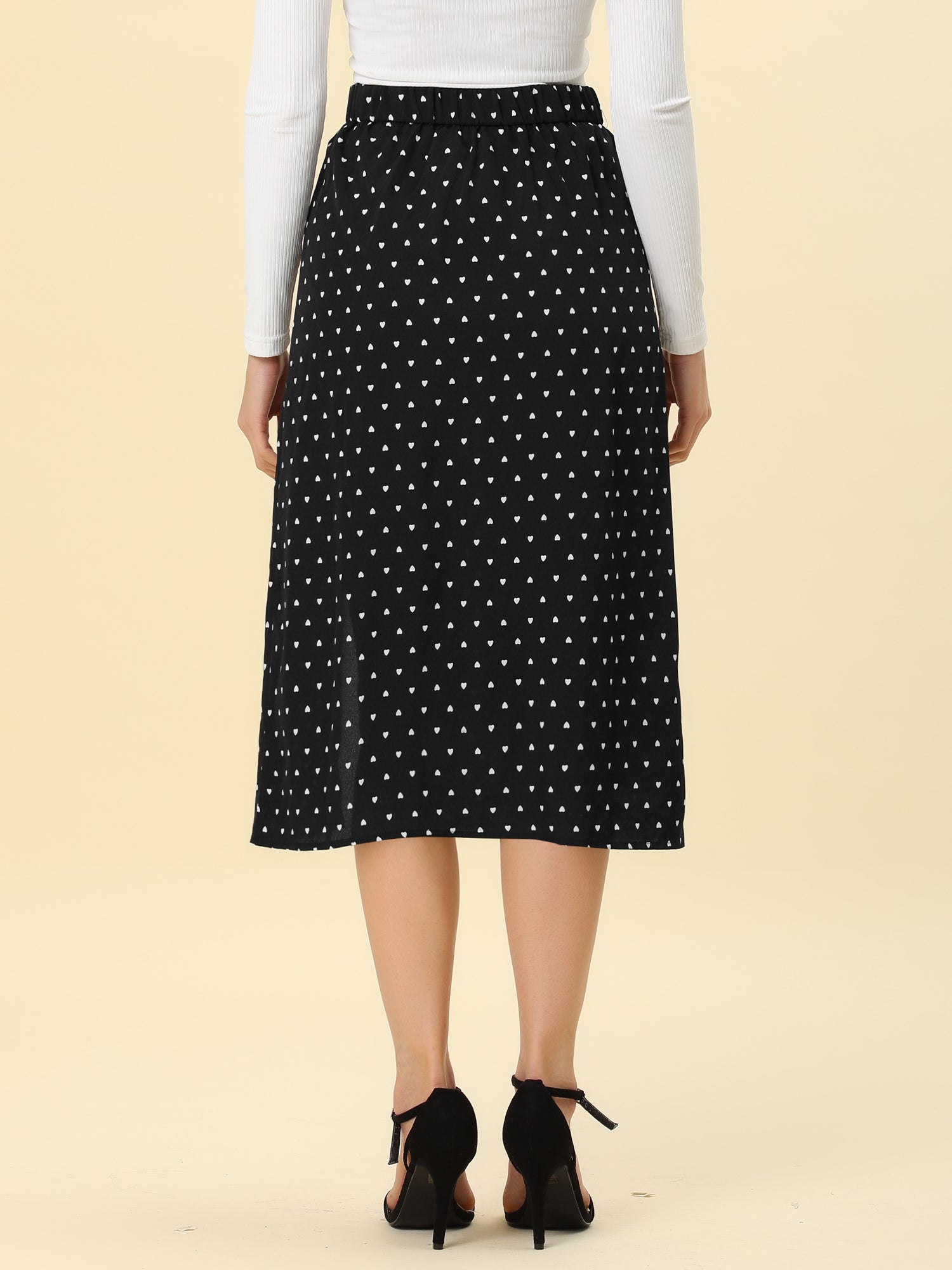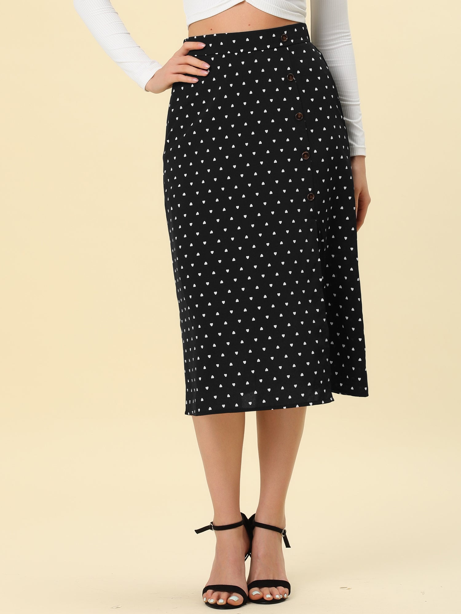 Falda tubo midi con abertura y estampado de corazones y botones para mujer