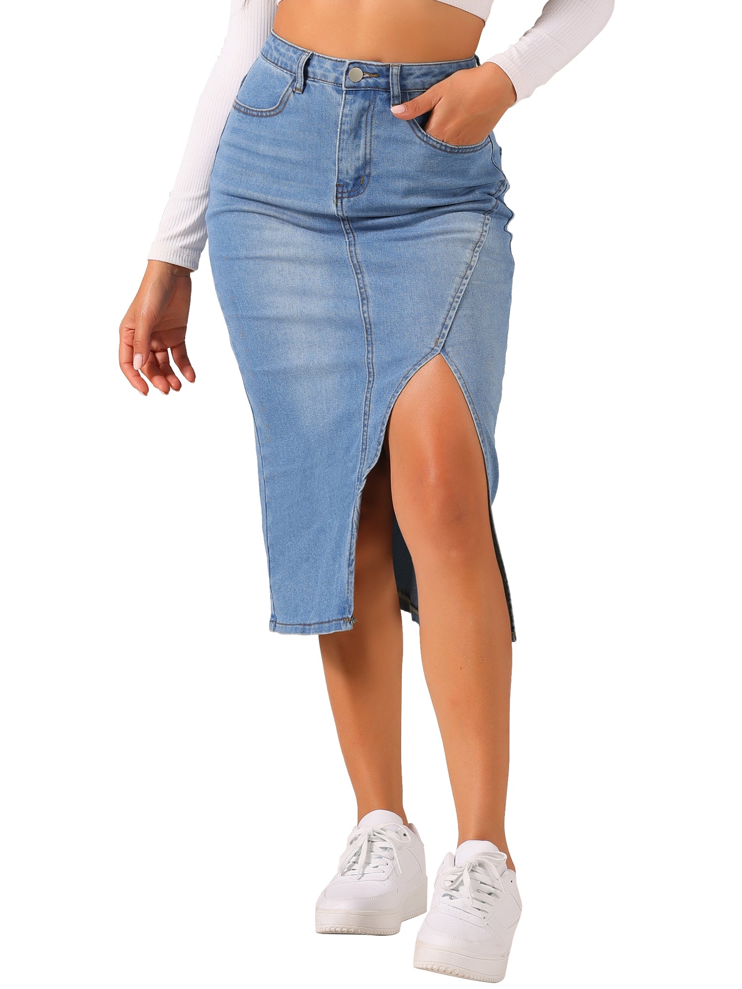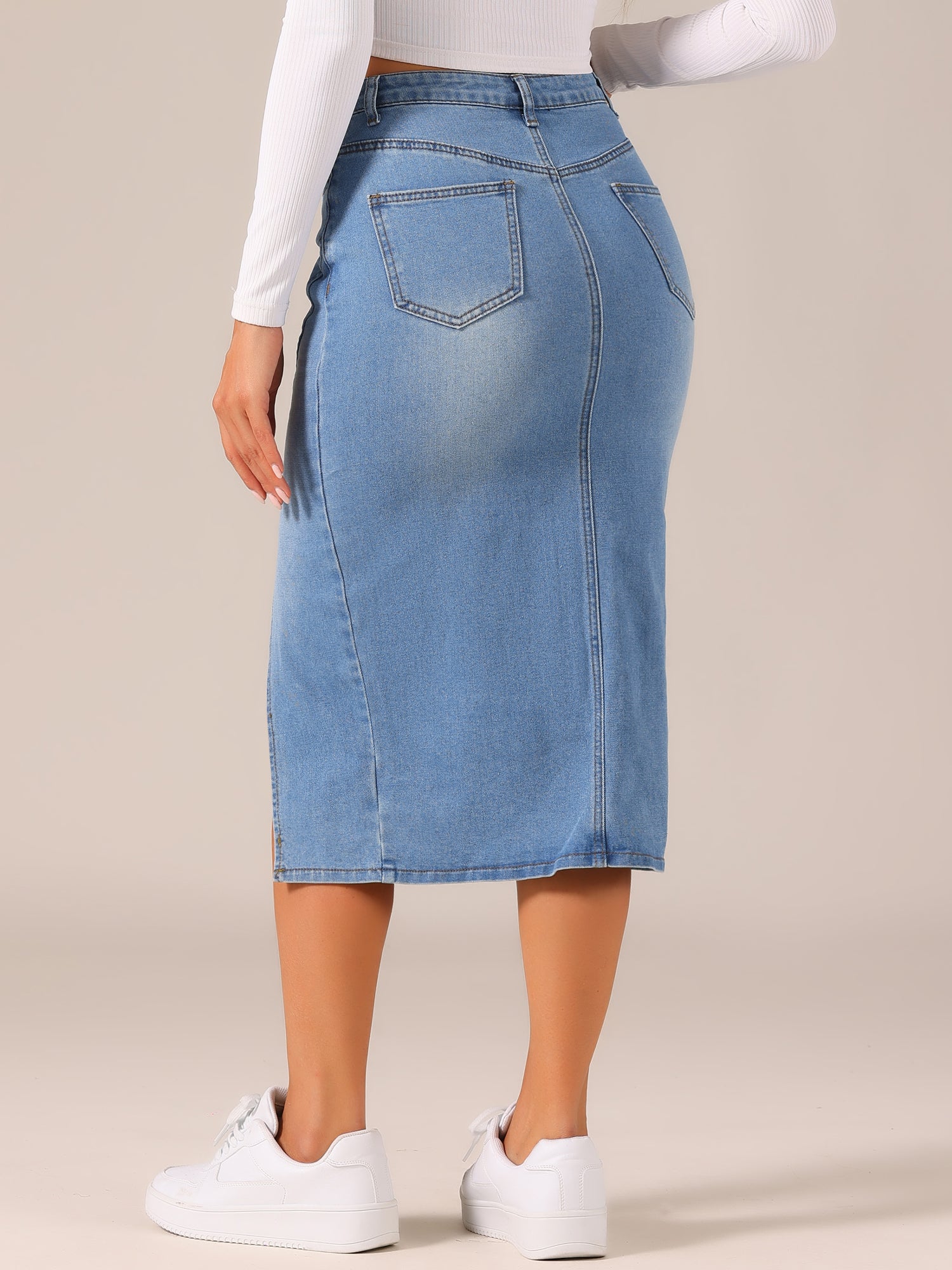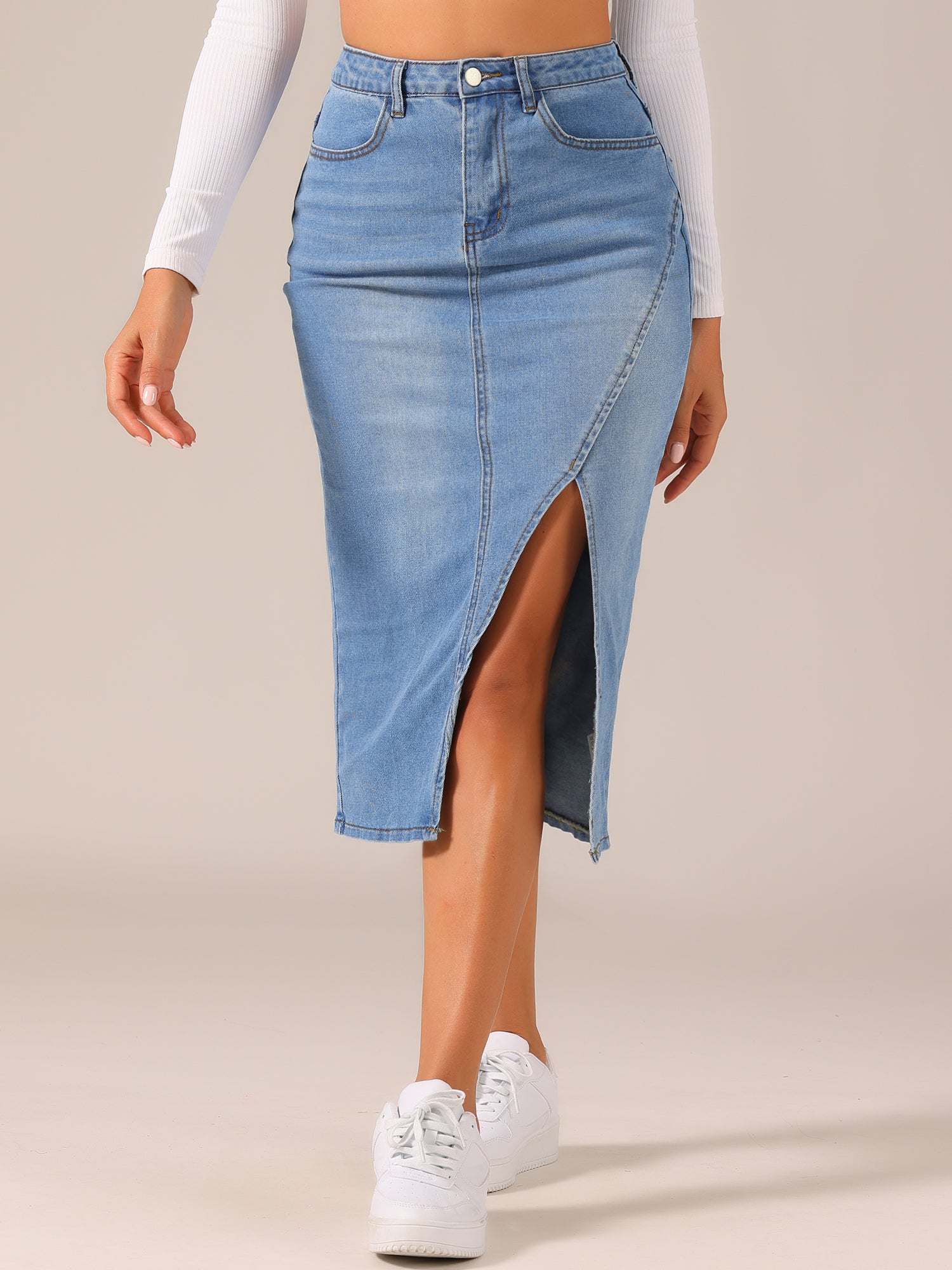 Falda vaquera informal de cintura alta con abertura frontal para mujer