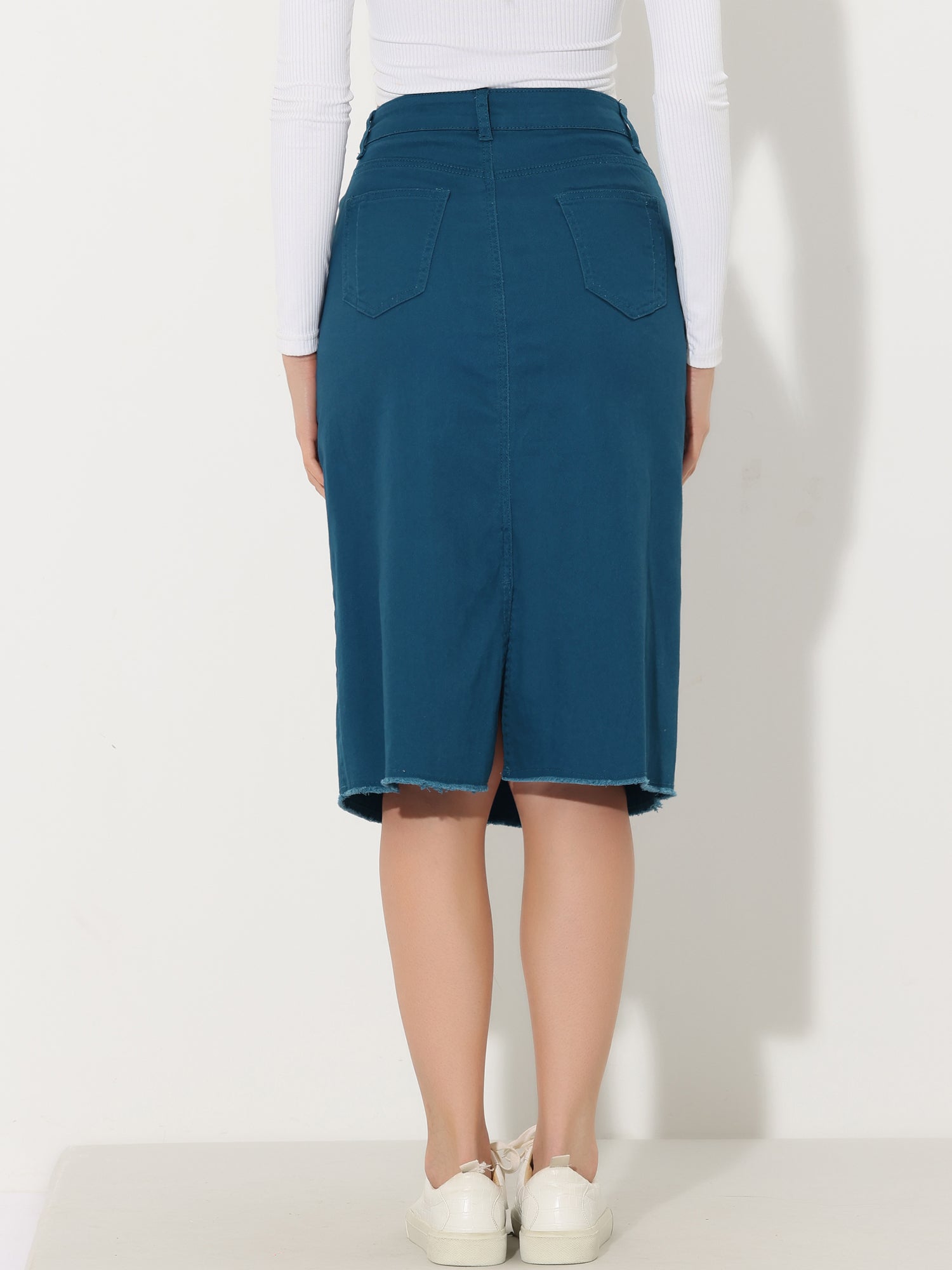 Falda vaquera informal para mujer, cintura alta, abertura trasera, elástica
