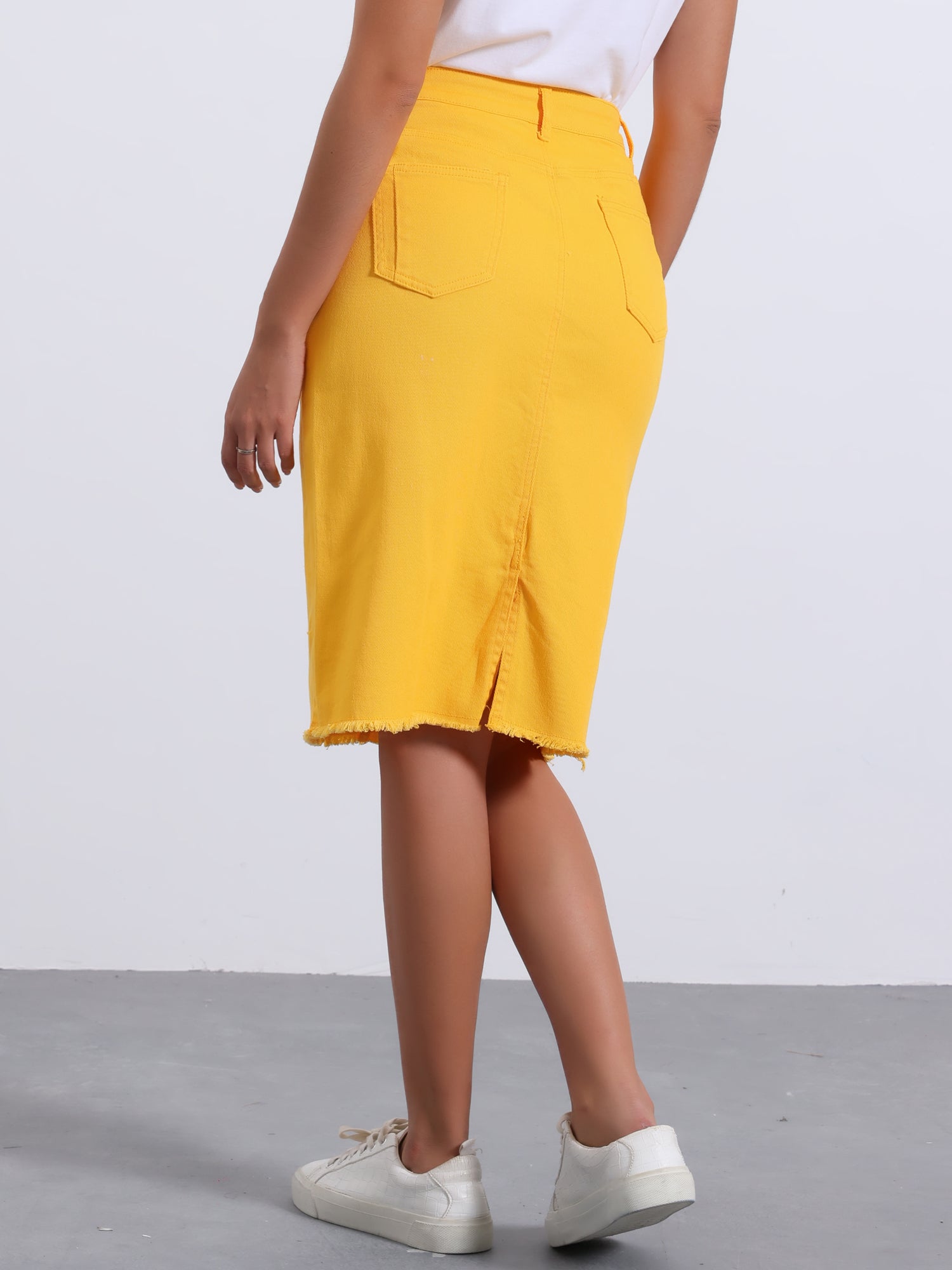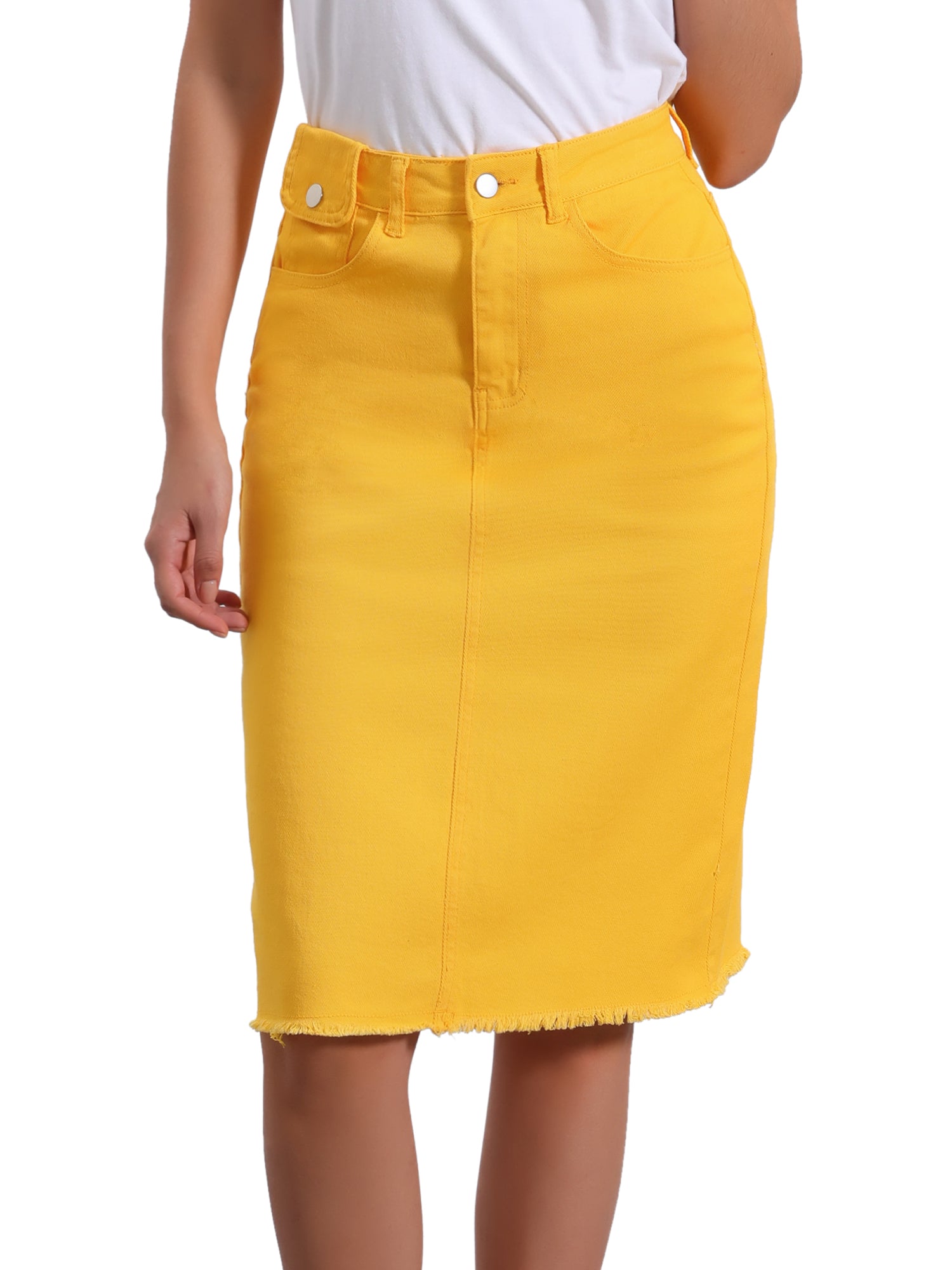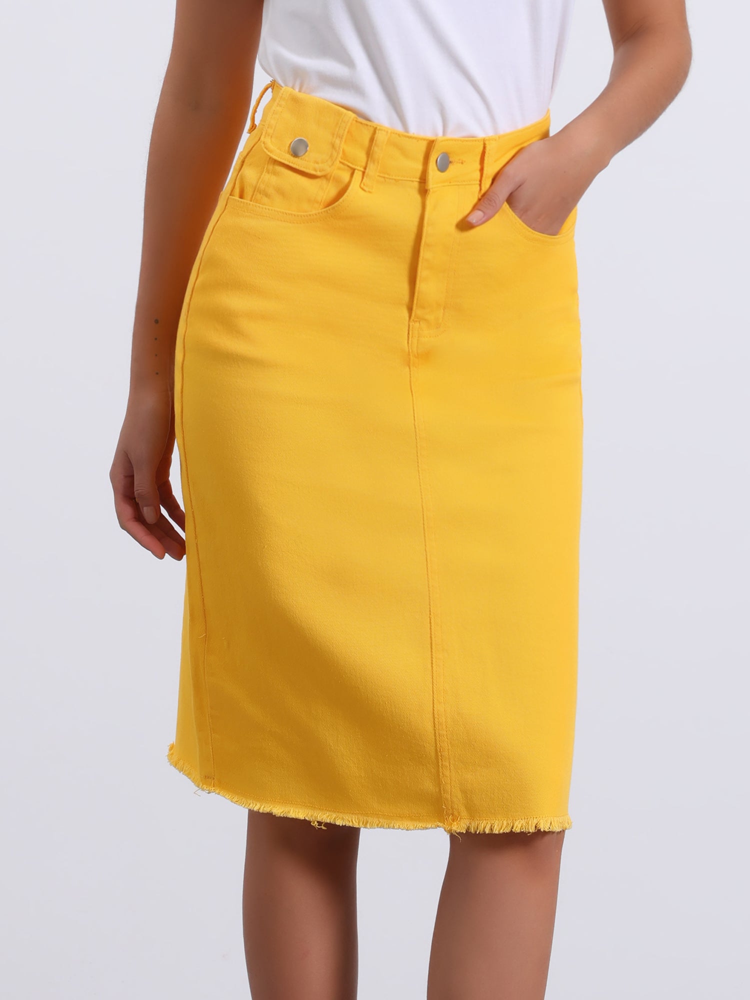 Falda vaquera informal para mujer, cintura alta, abertura trasera, elástica