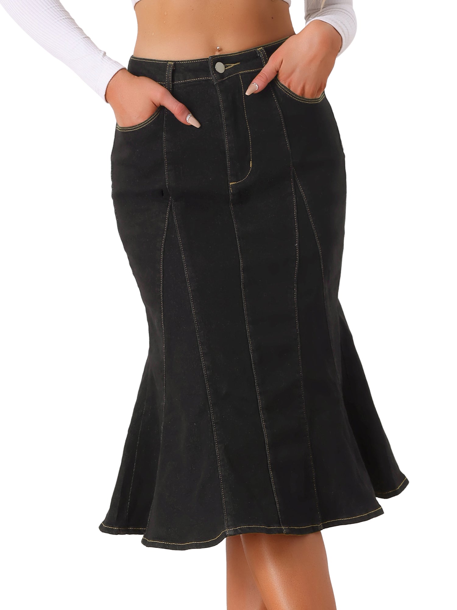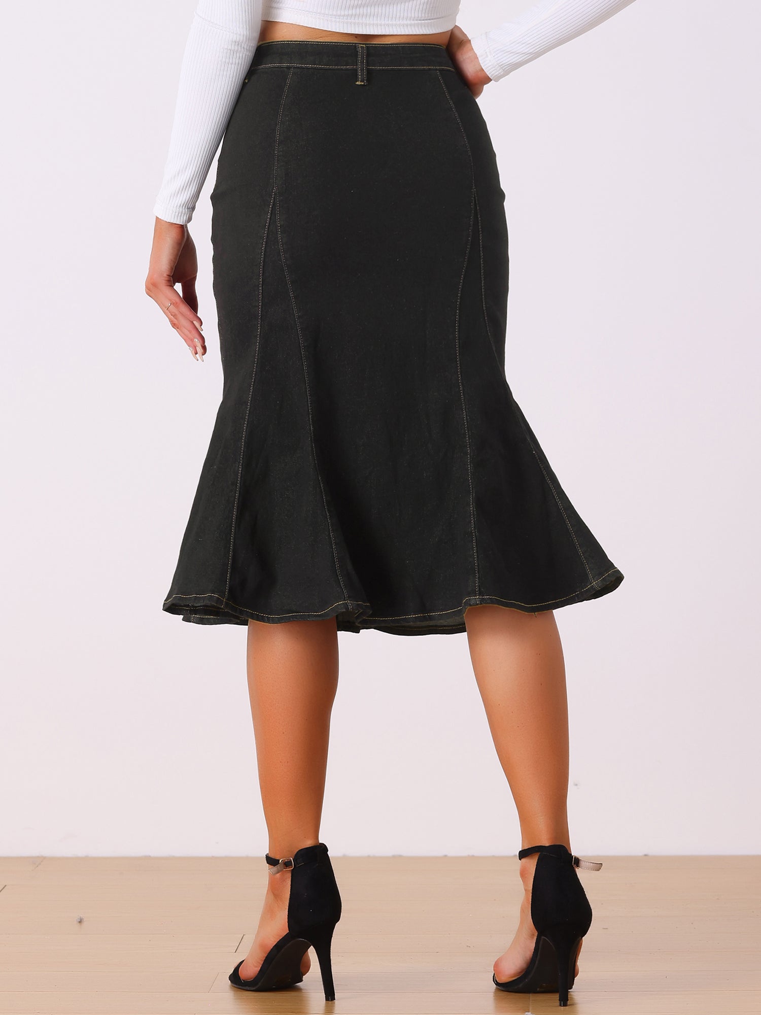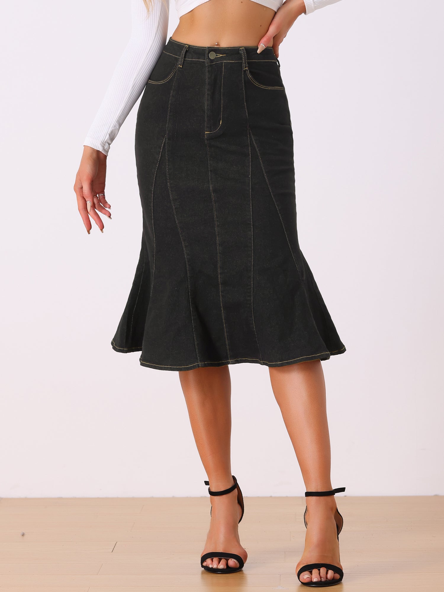Falda vaquera midi ajustada de cintura alta con volantes y cola de pez para mujer