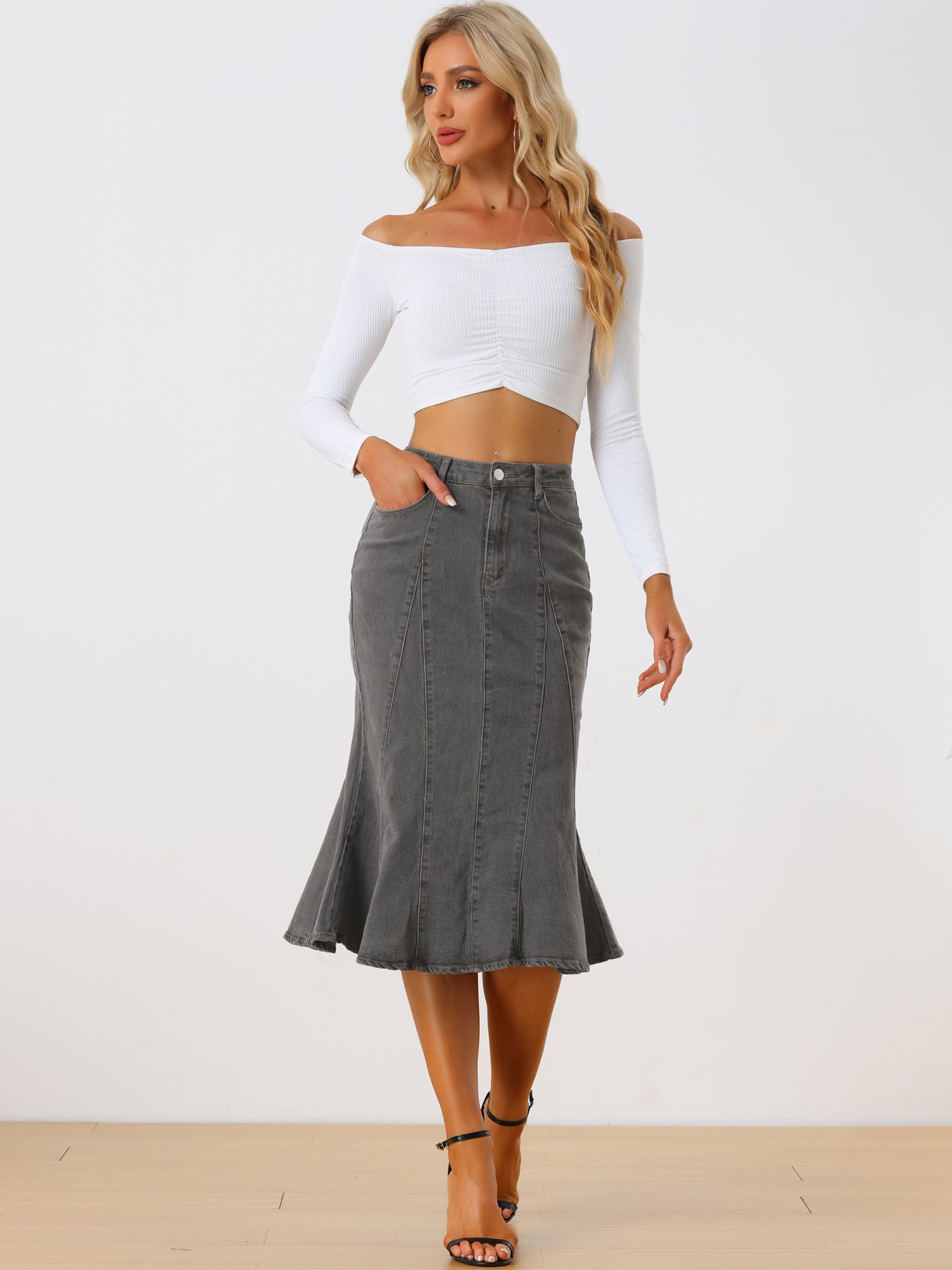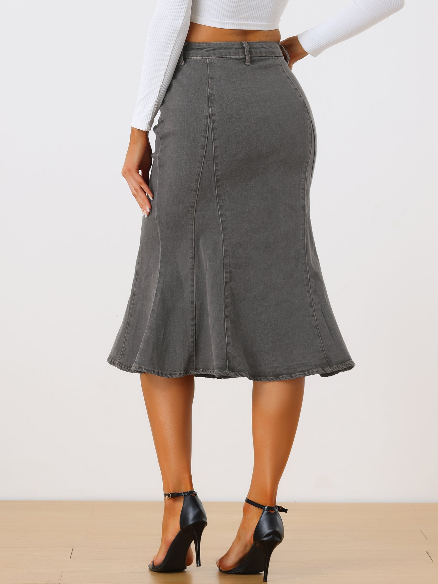 Falda vaquera midi ajustada de cintura alta con volantes y cola de pez para mujer