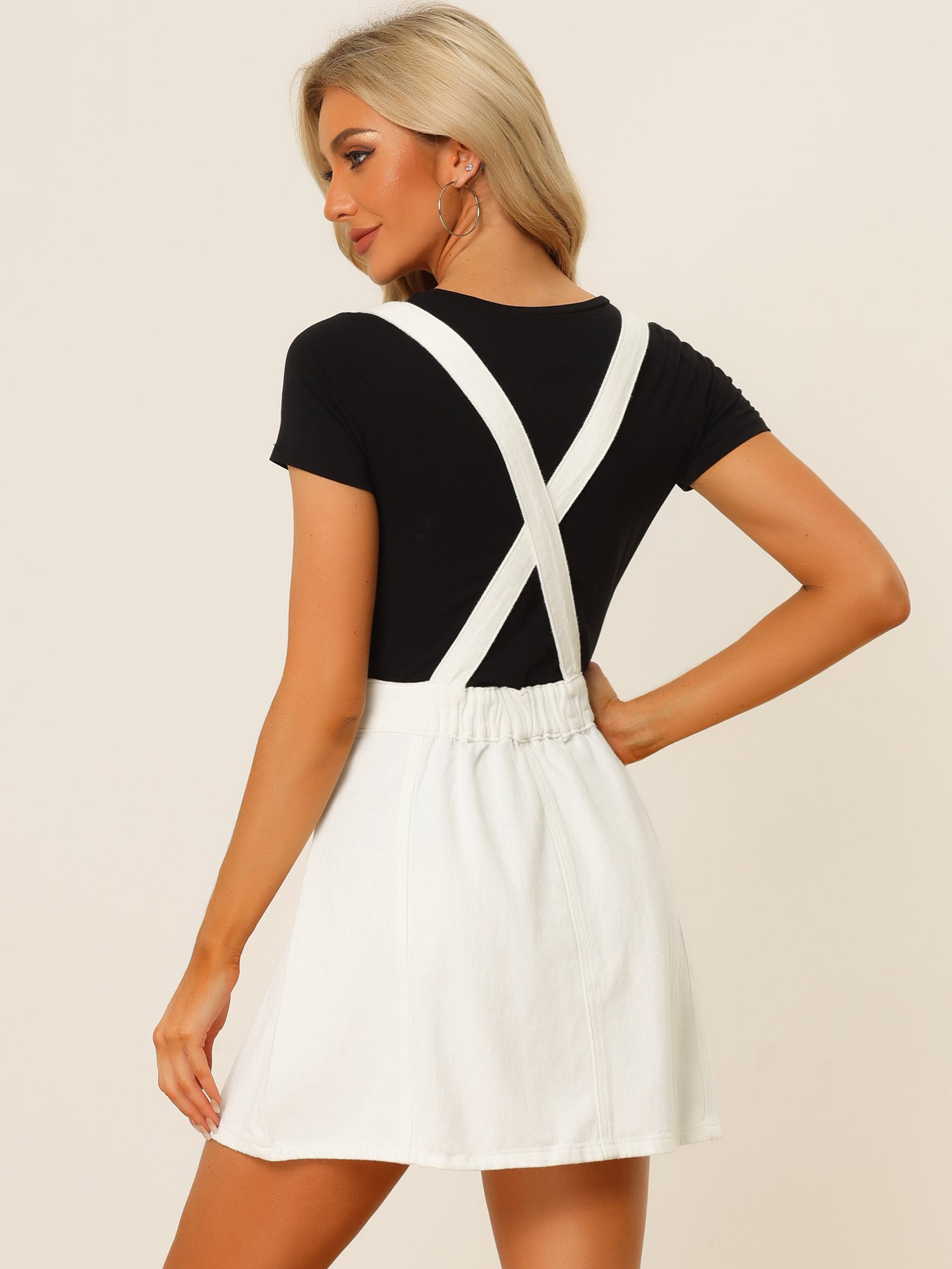 Falda vaquera para mujer, mono con tirantes ajustables, minifalda vaquera lavada
