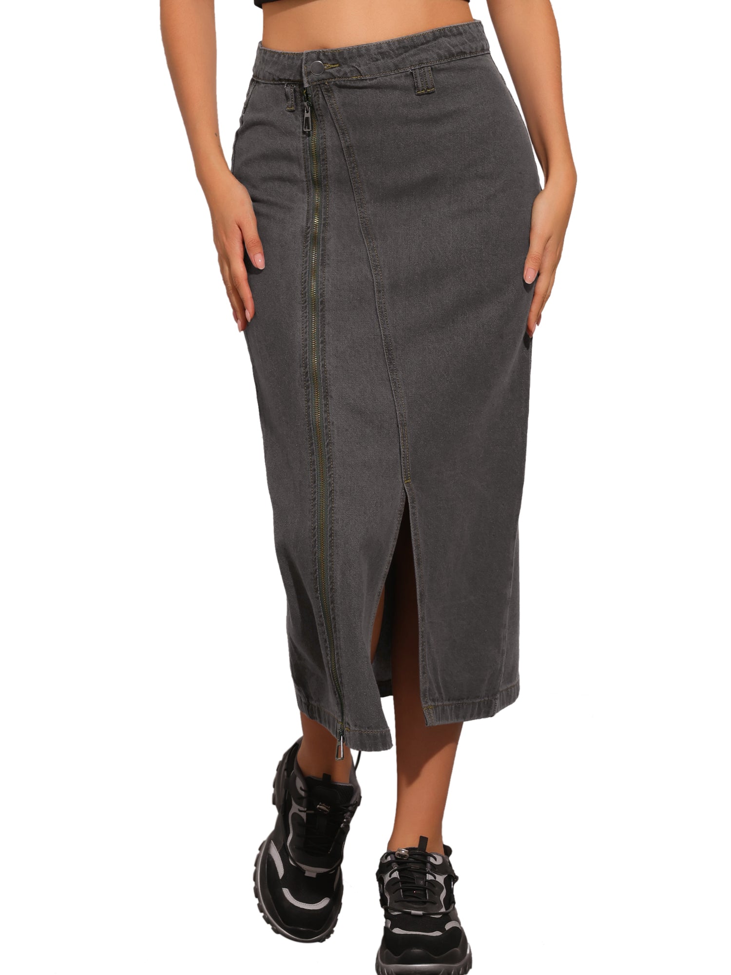 Faldas largas de mezclilla con cremallera frontal y bolsillos para mujer