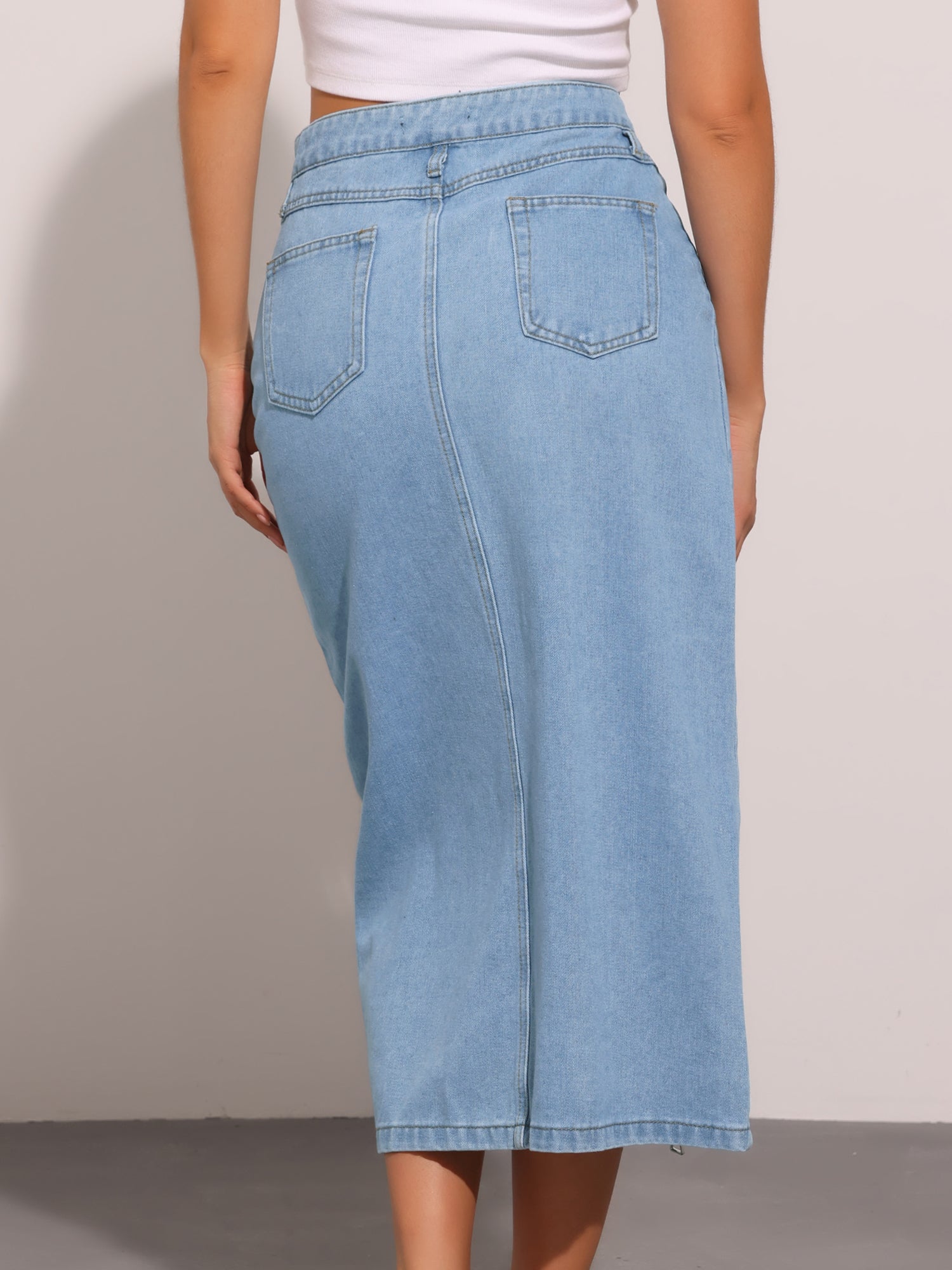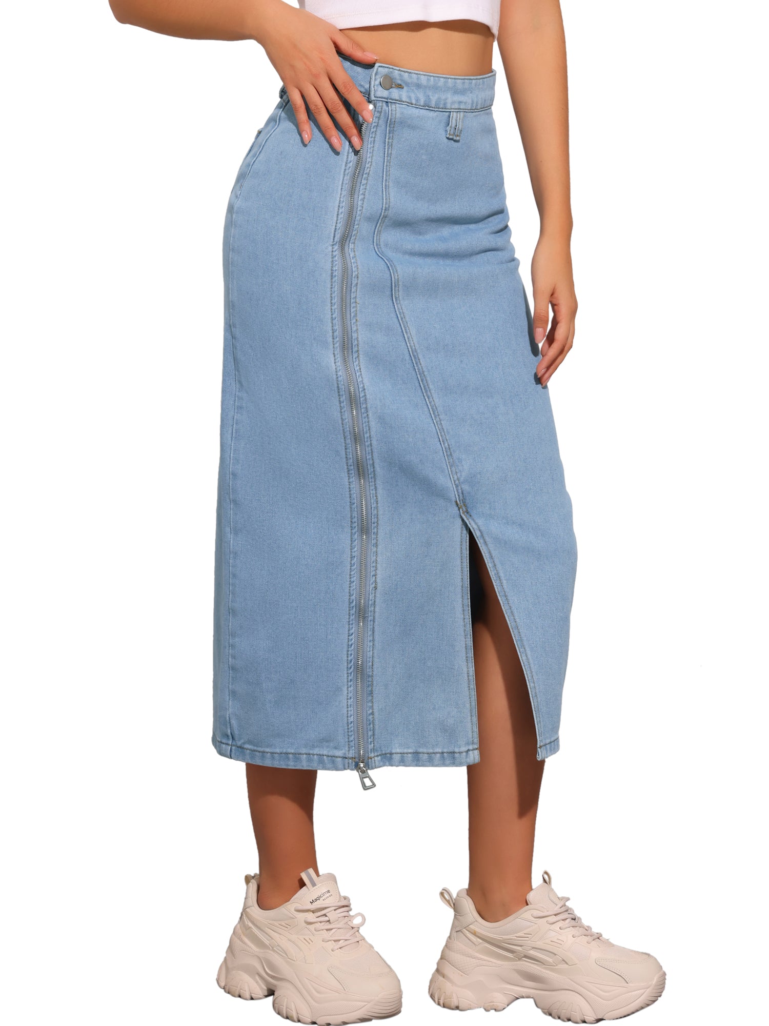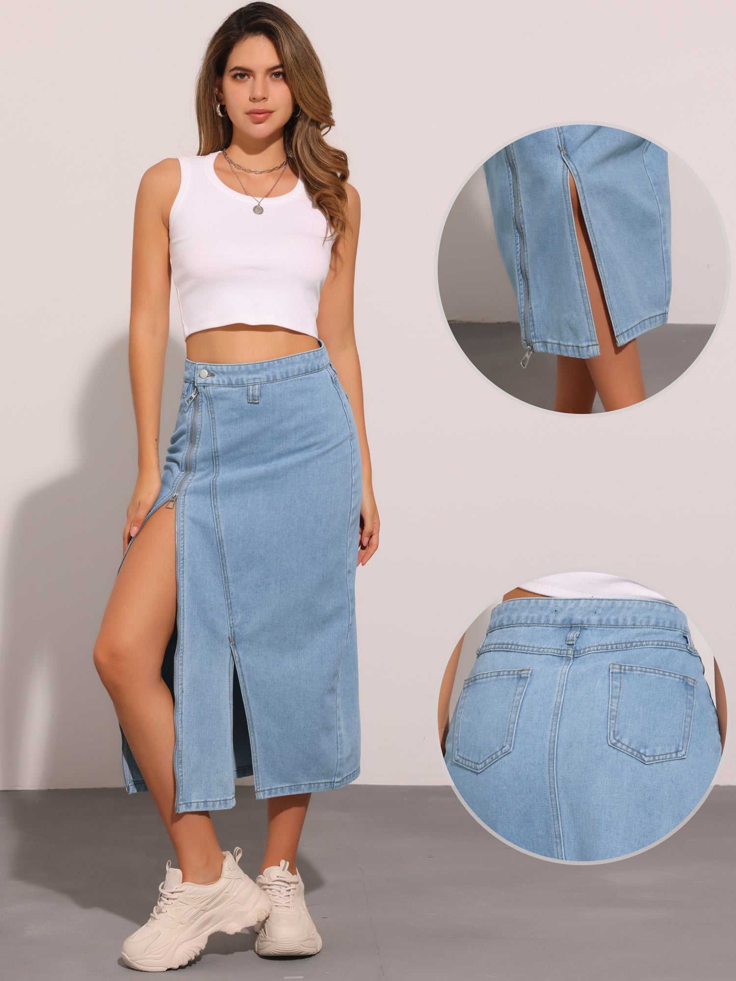Faldas largas de mezclilla con cremallera frontal y bolsillos para mujer