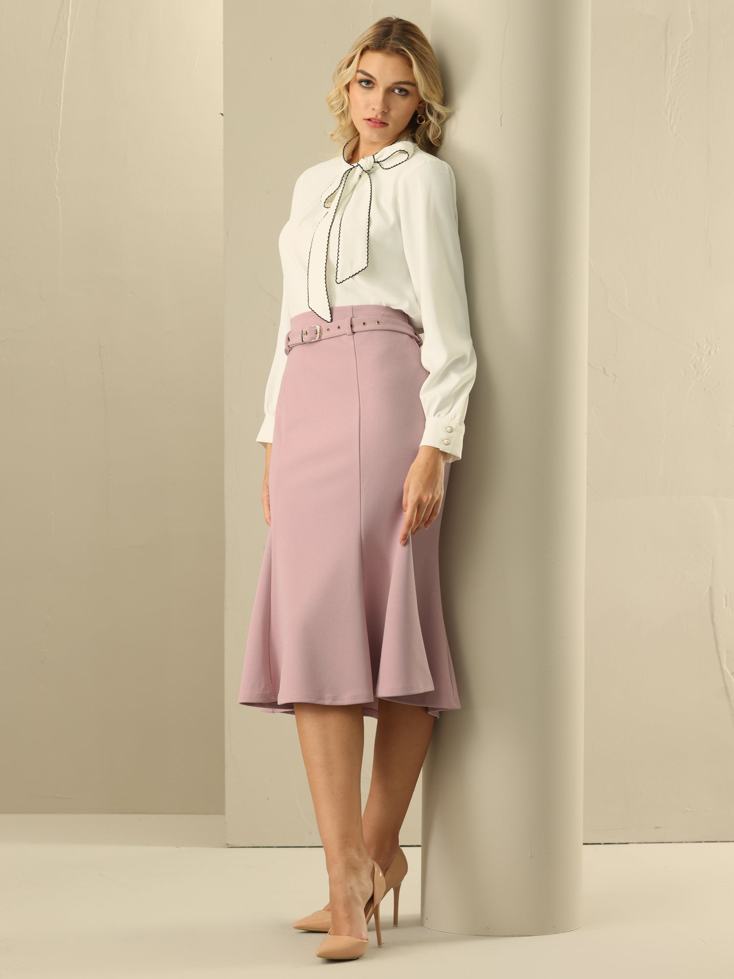 Falda elegante de cola de pez para mujer, cintura alta, con cinturón, elegante falda midi de sirena