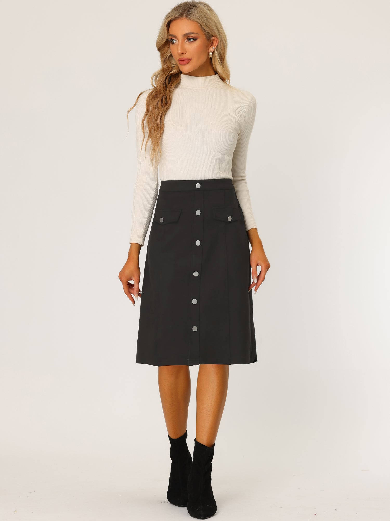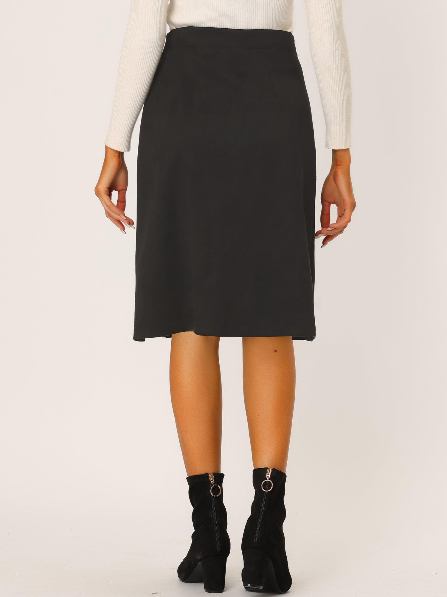 Falda de gamuza sintética para mujer, con botones delanteros, cintura alta, caída hasta la rodilla, faldas de corte A