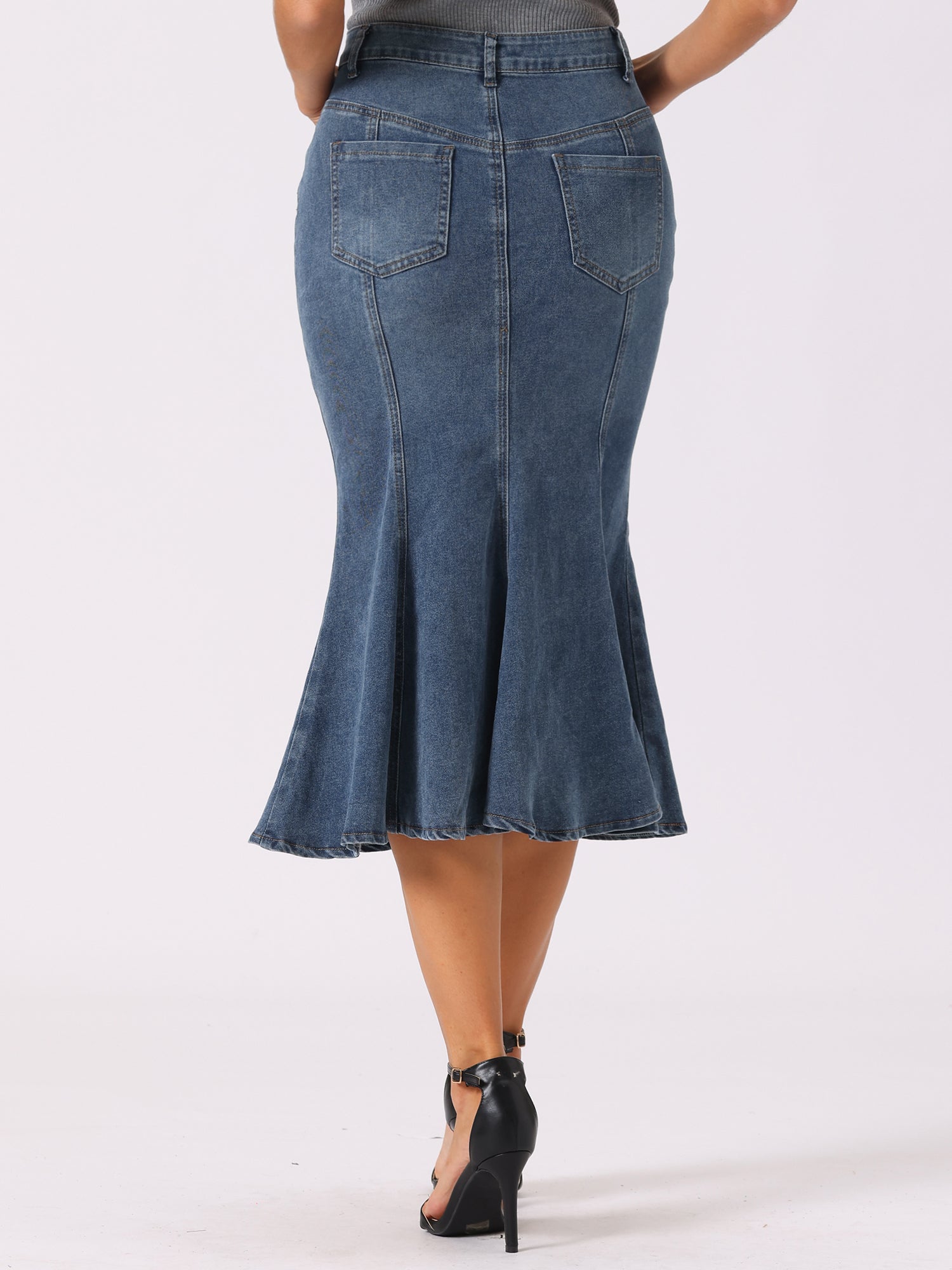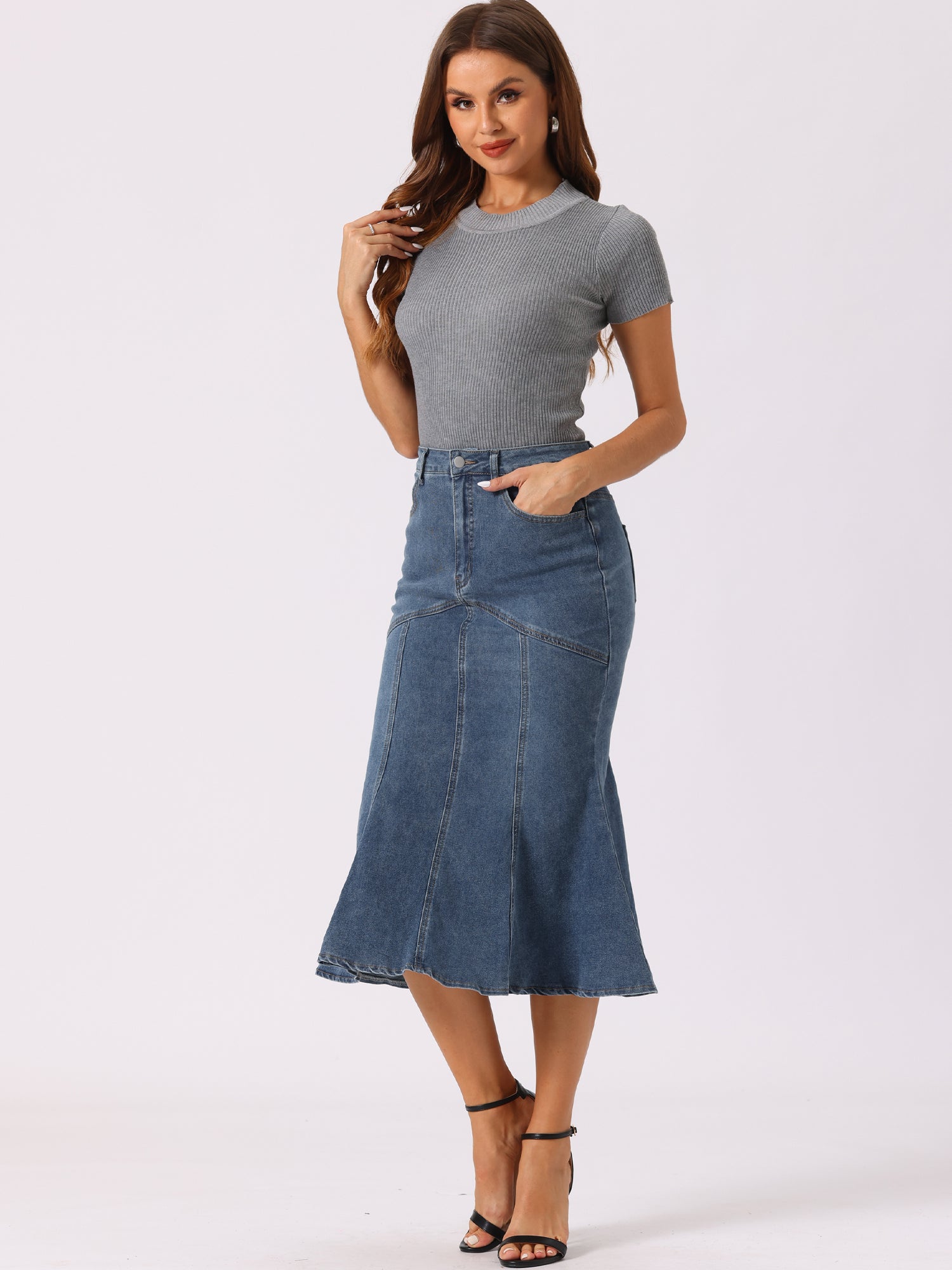 Falda vaquera de cola de pez para mujer, cintura alta, ajustada, midi, falda vaquera