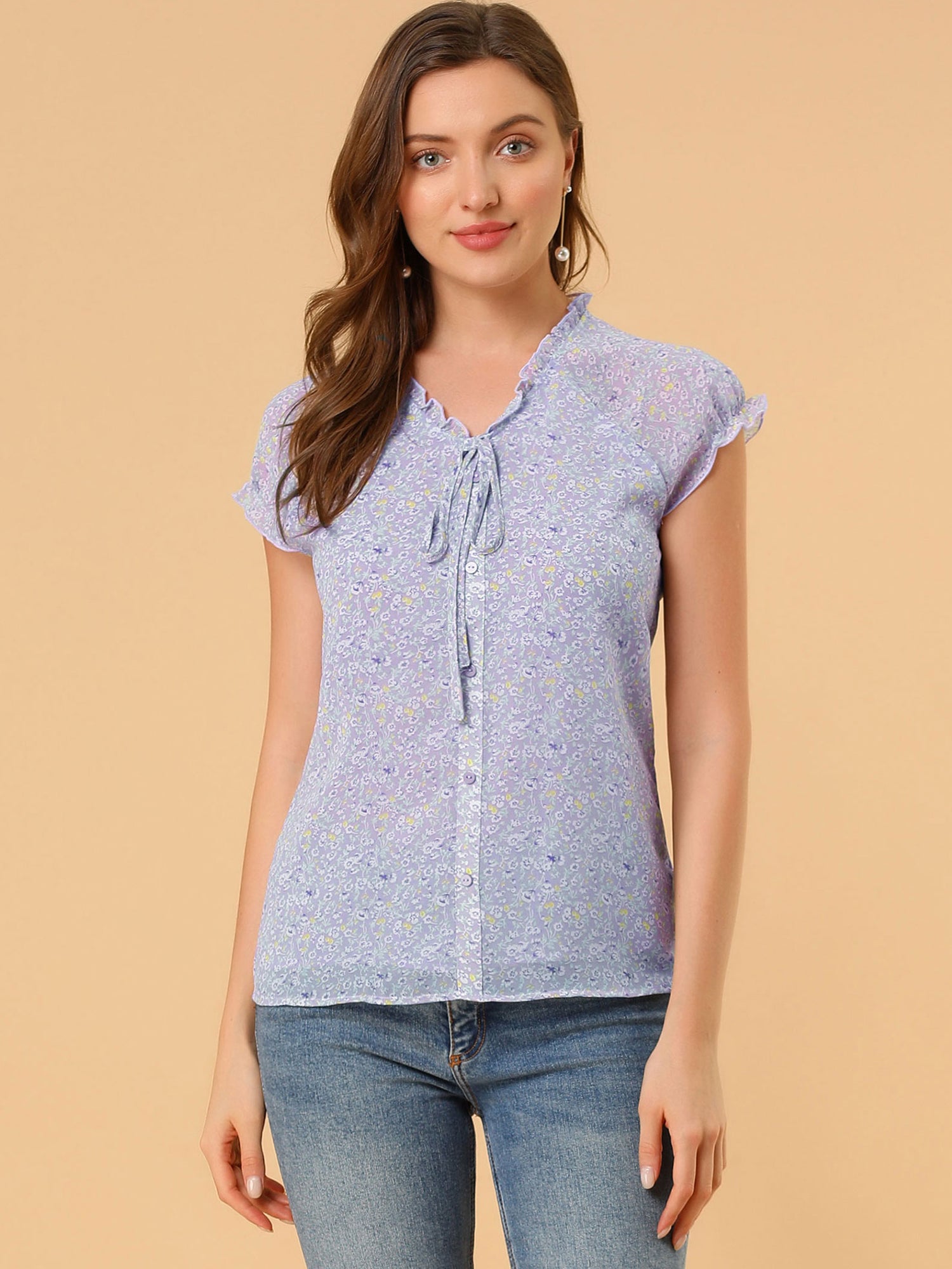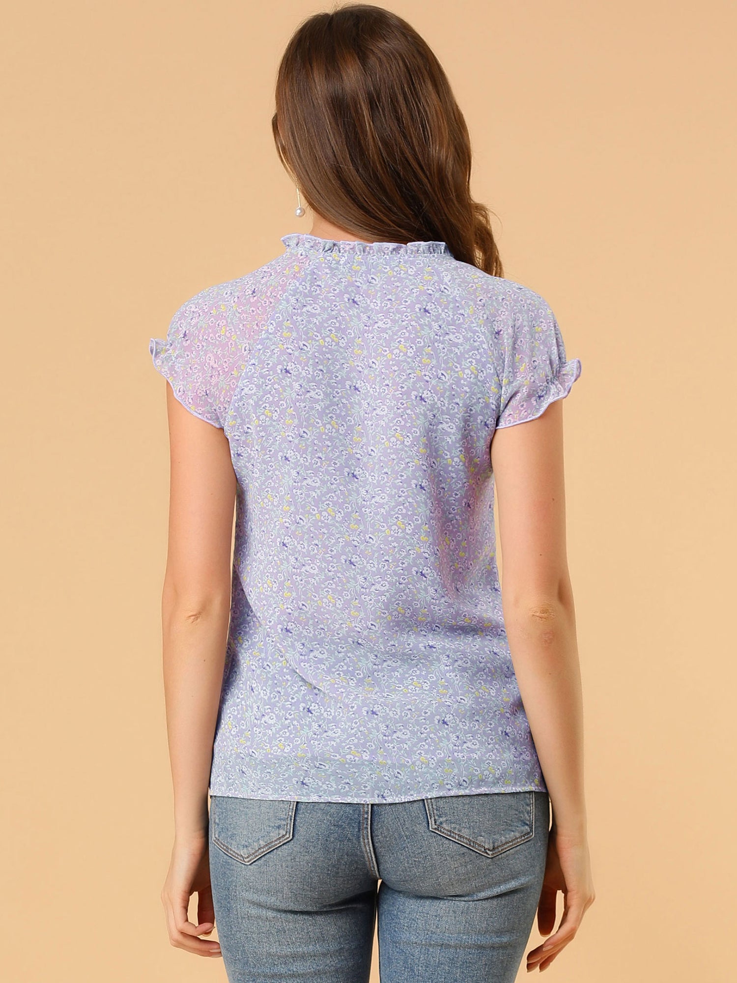 Blusa de gasa con volantes, mangas cortas y escote en V, floral, para mujer (disponible en tallas grandes)