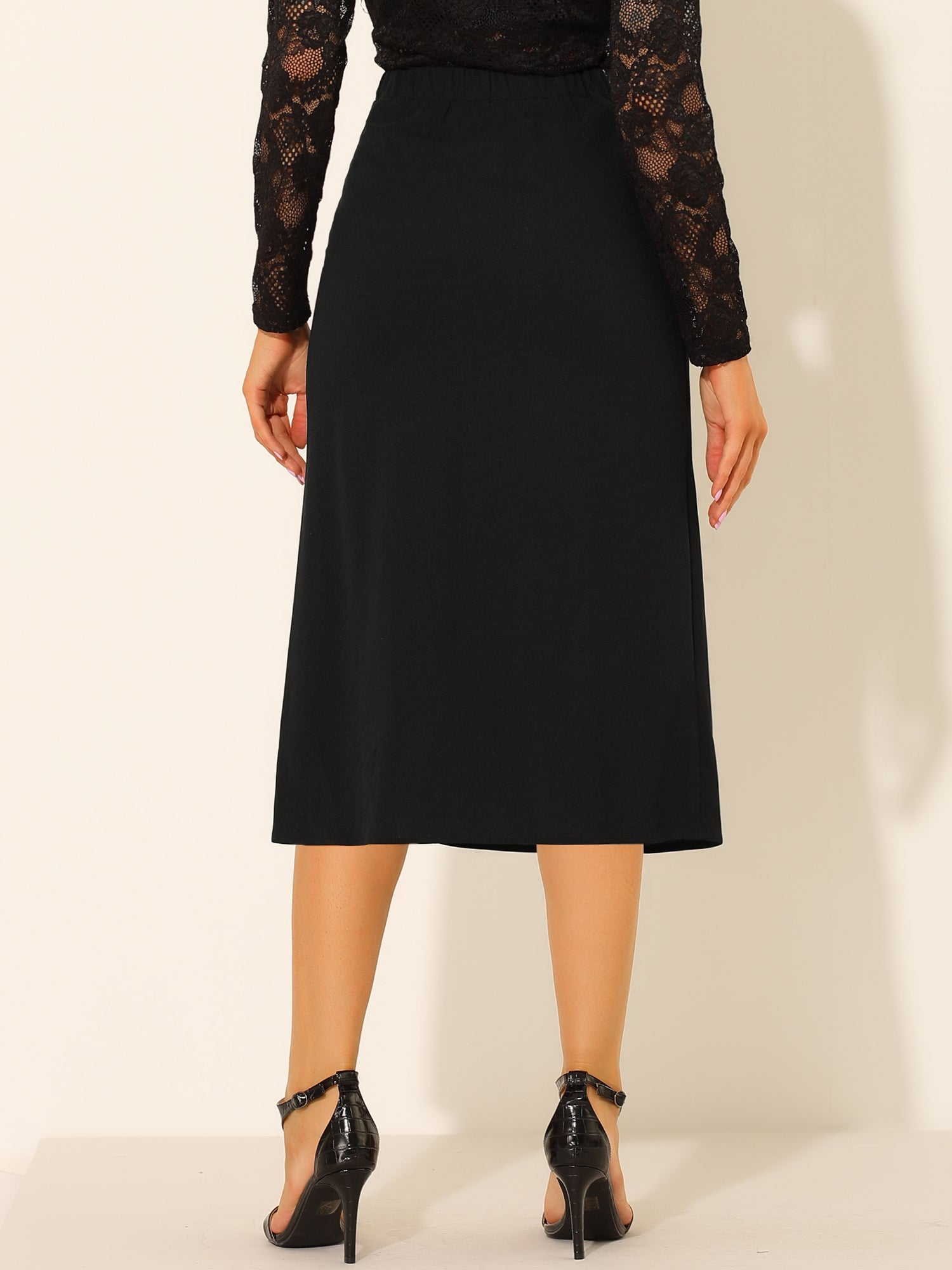 Falda gótica de cintura elástica con abertura alta por debajo de la rodilla para mujer