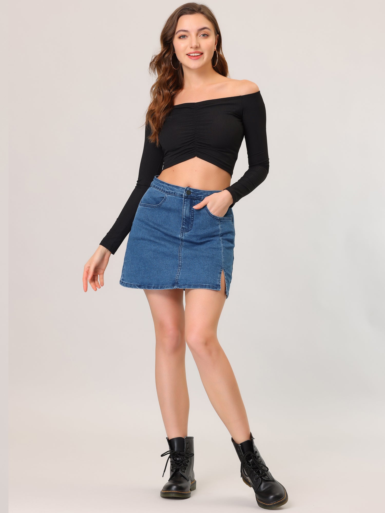 Falda vaquera de cintura alta para mujer, con abertura lateral, informal, elástica, corta, minifalda vaquera