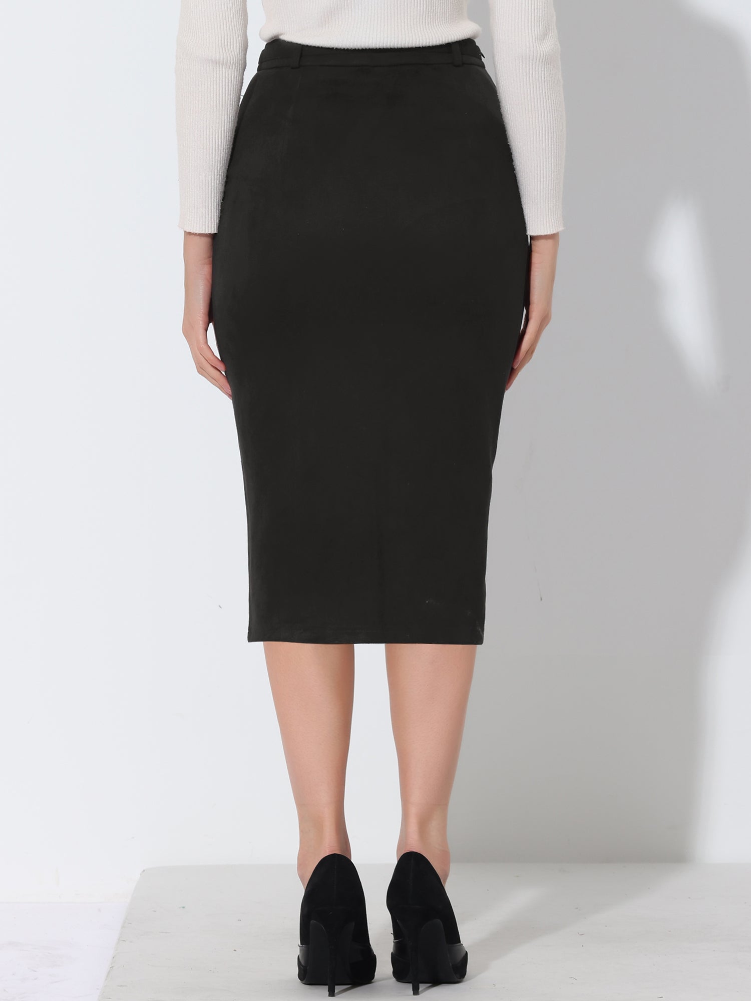 Falda tubo ajustada de cintura alta con cinturón y dobladillo dividido de ante sintético para mujer