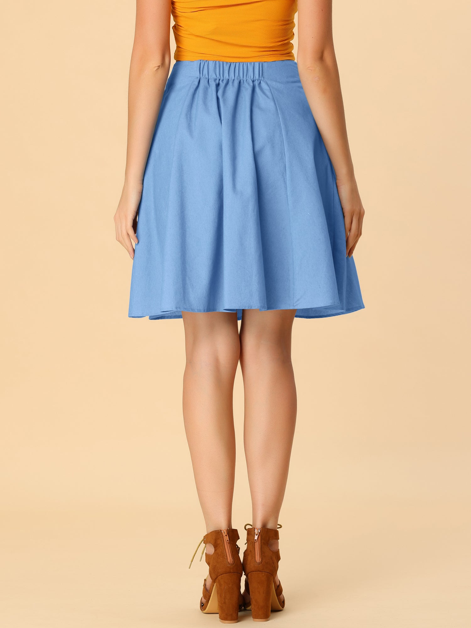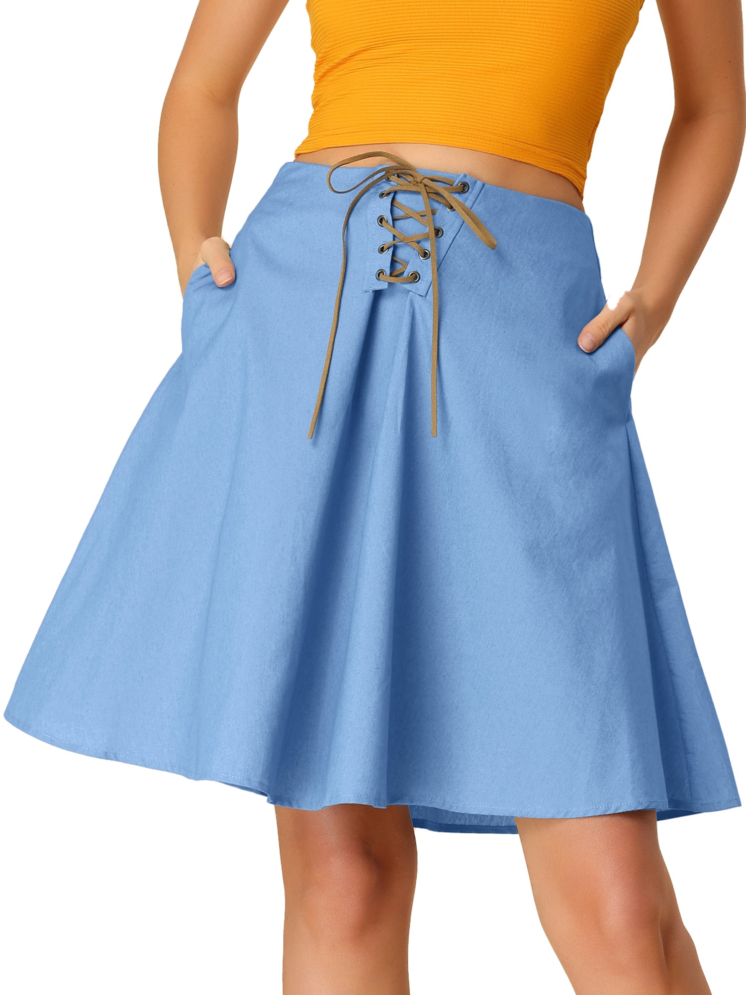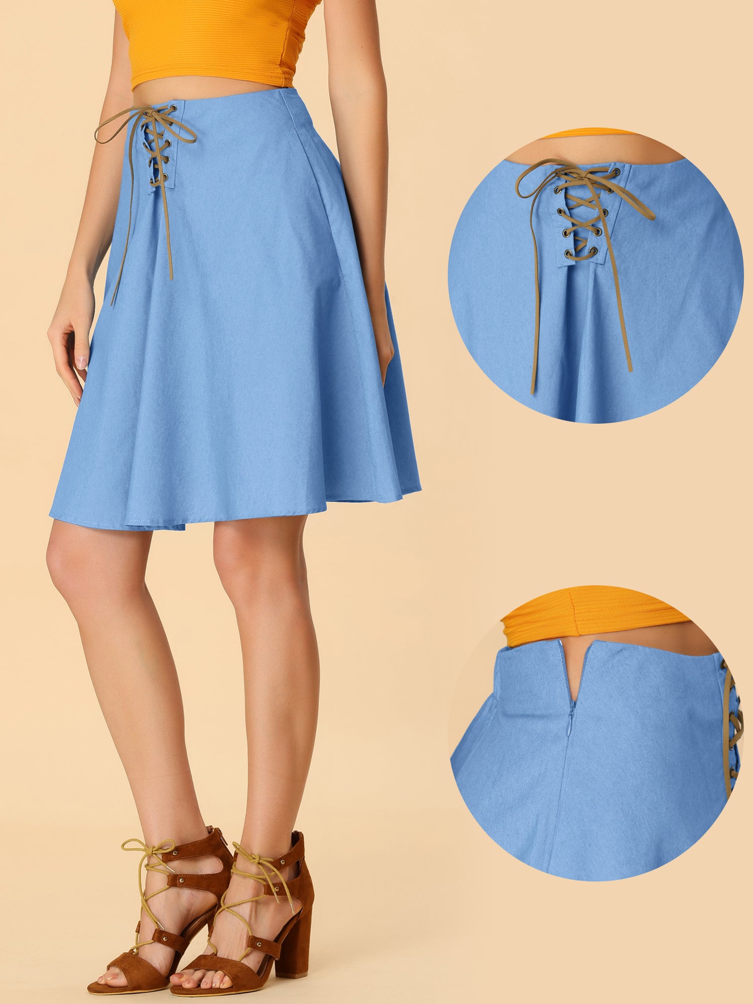 Falda vaquera de mujer con cordones y corte cambray hasta la rodilla