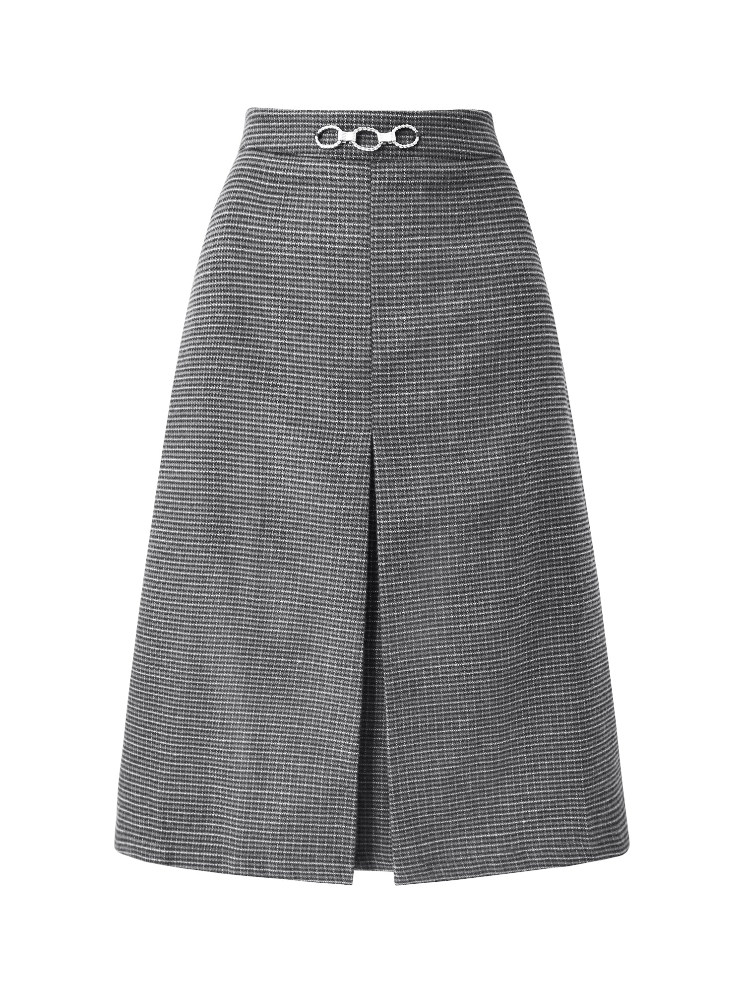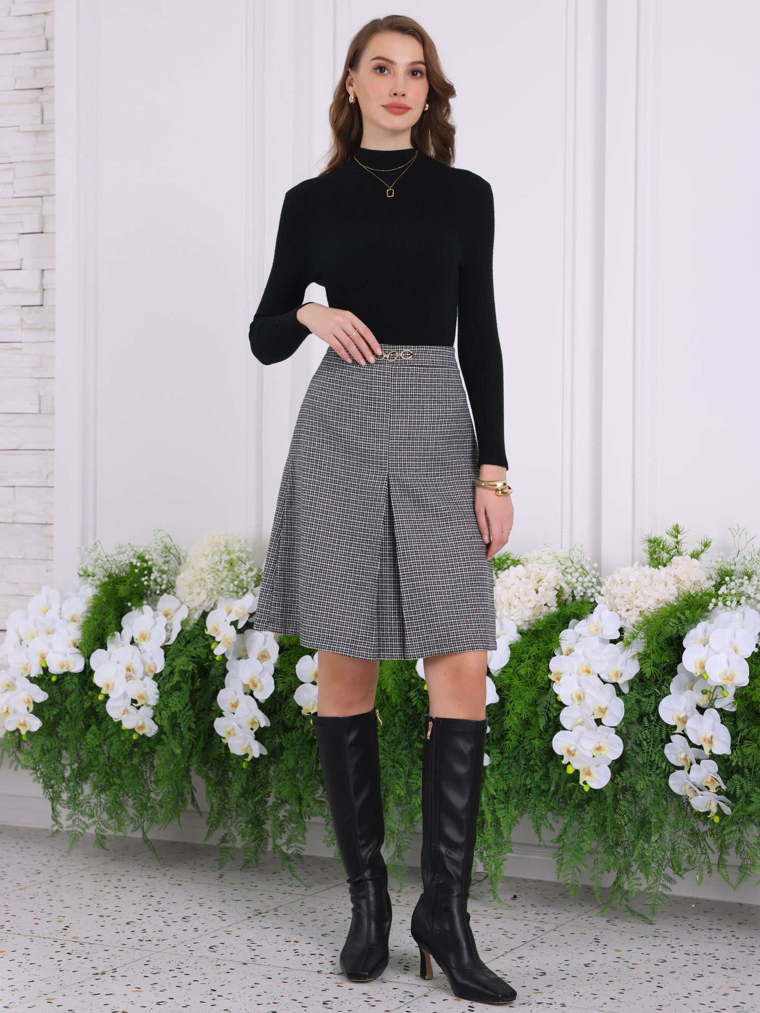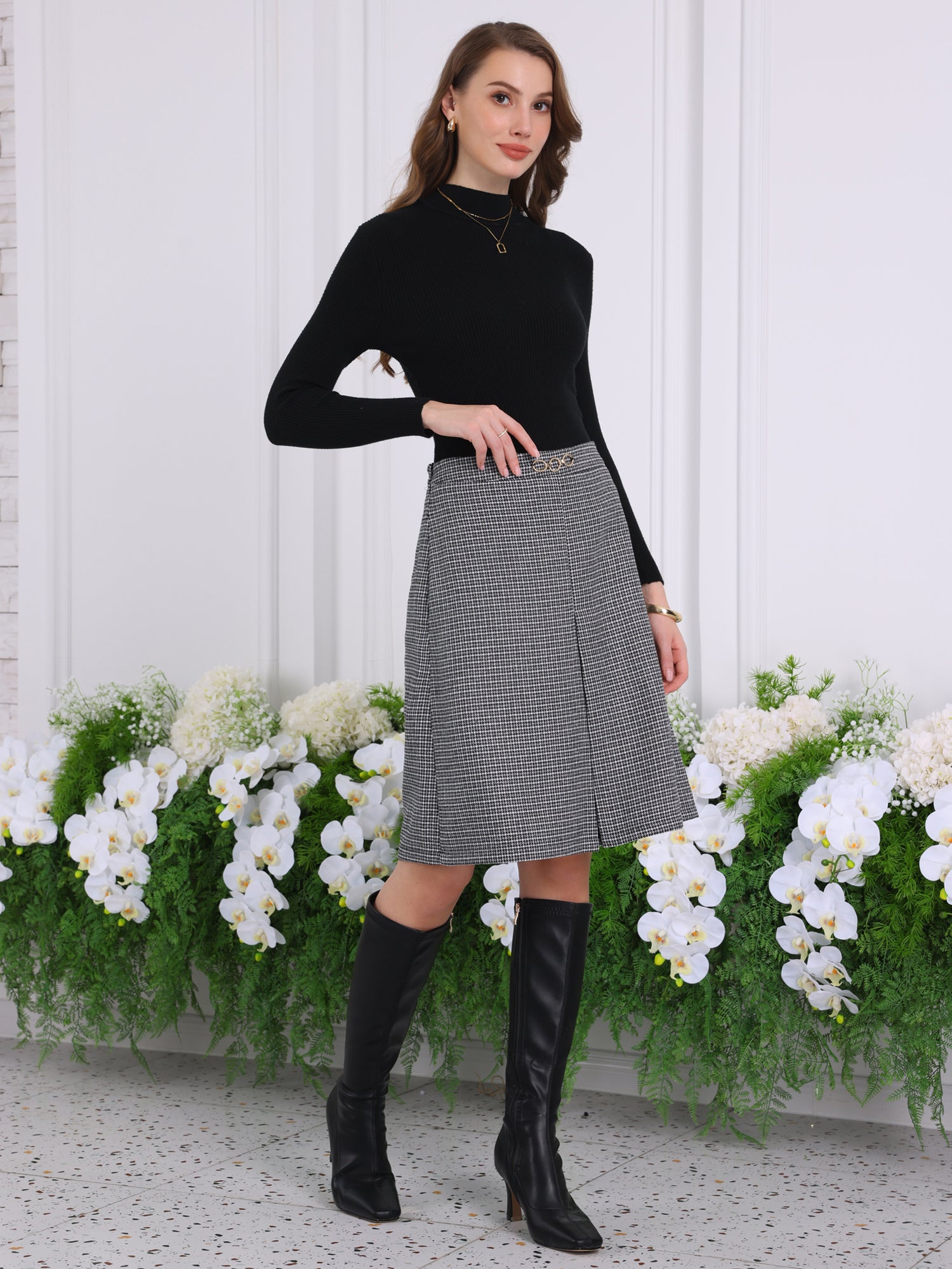 Falda de oficina a cuadros escoceses de cintura alta hasta la rodilla para mujer