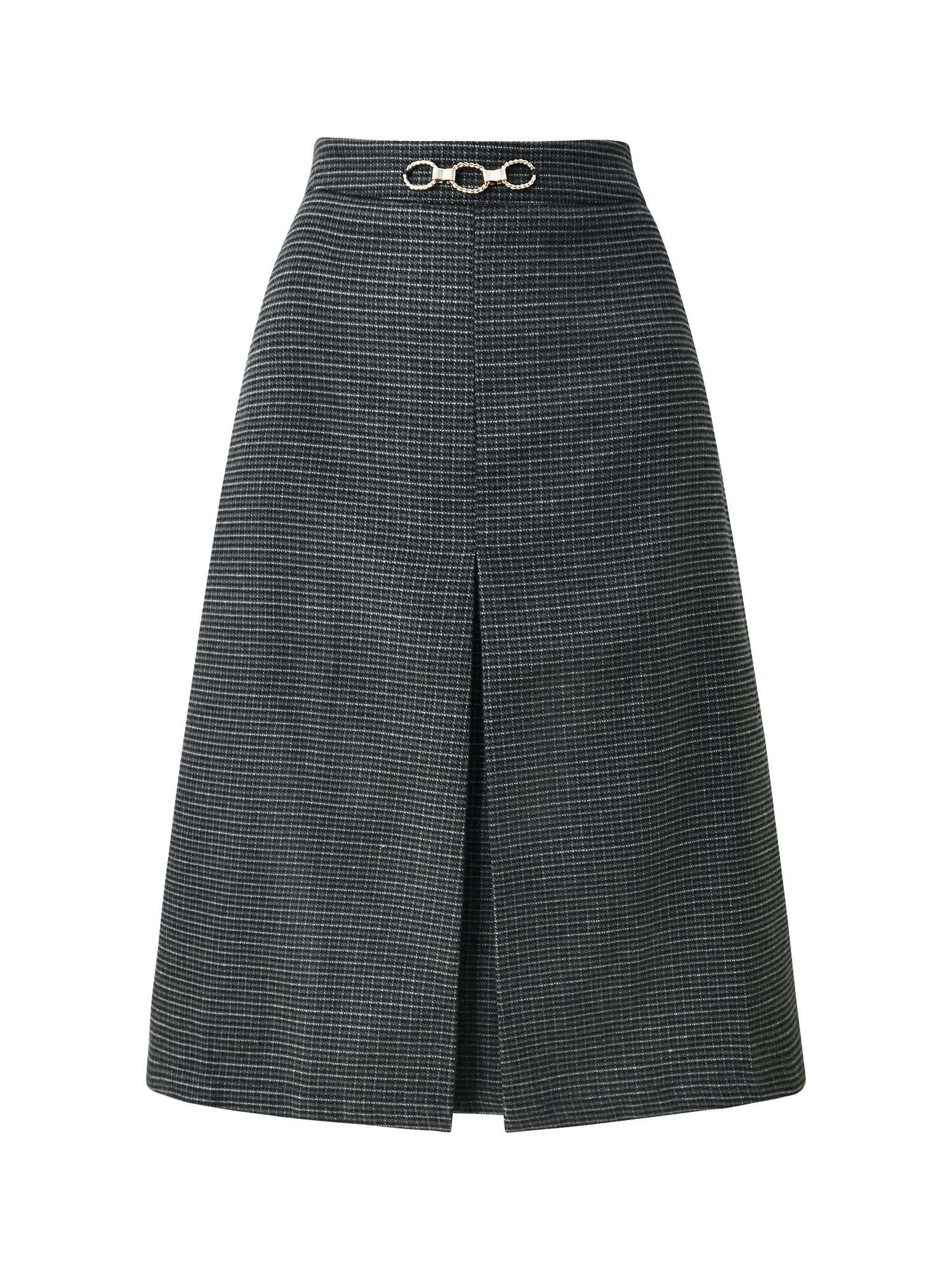 Falda de oficina a cuadros escoceses de cintura alta hasta la rodilla para mujer