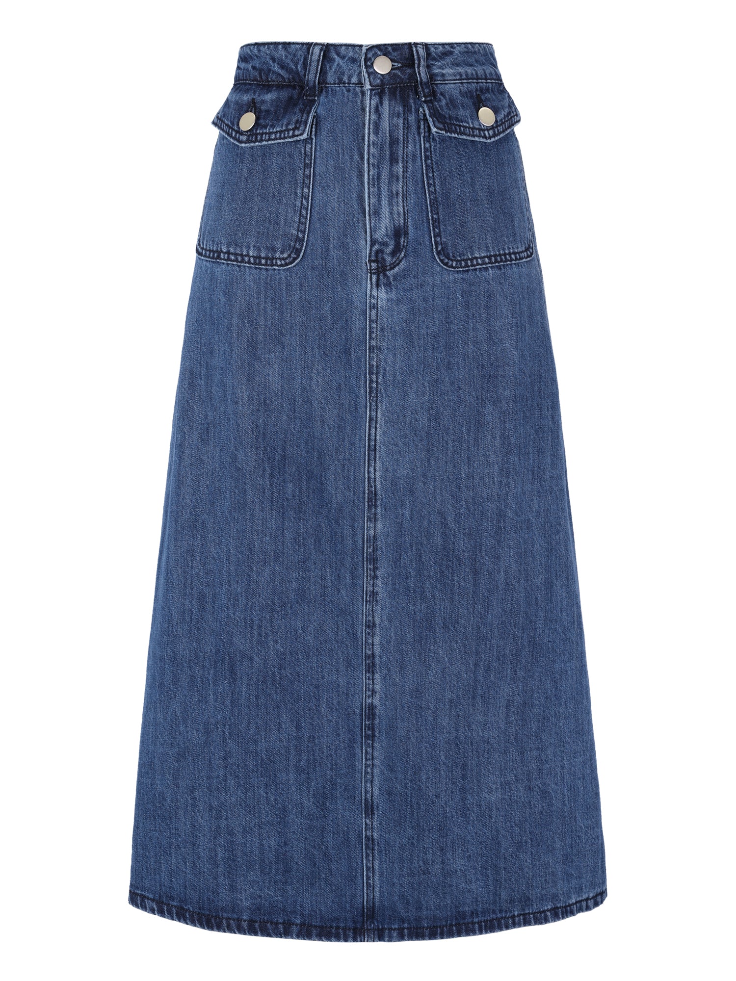 Falda vaquera larga de cintura alta con bolsillo y solapa para mujer