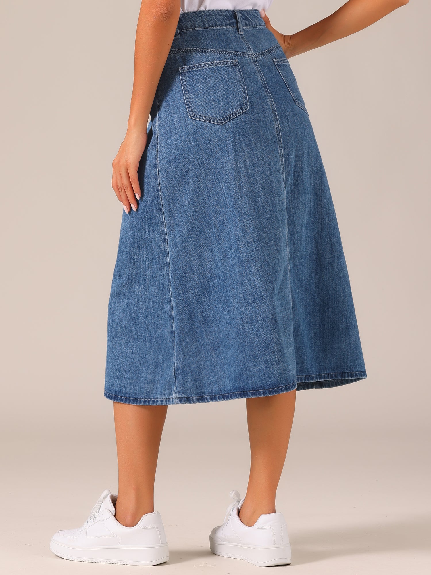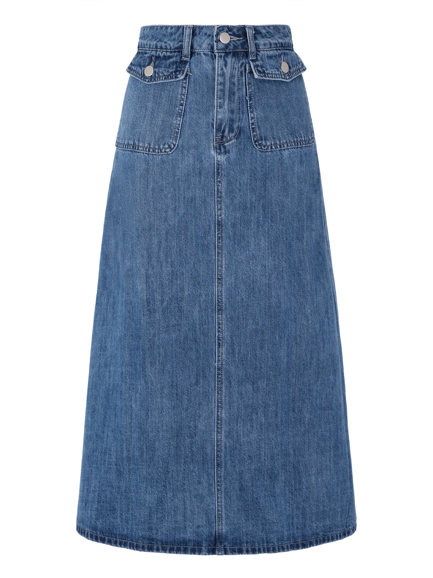 Falda vaquera larga de cintura alta con bolsillo y solapa para mujer
