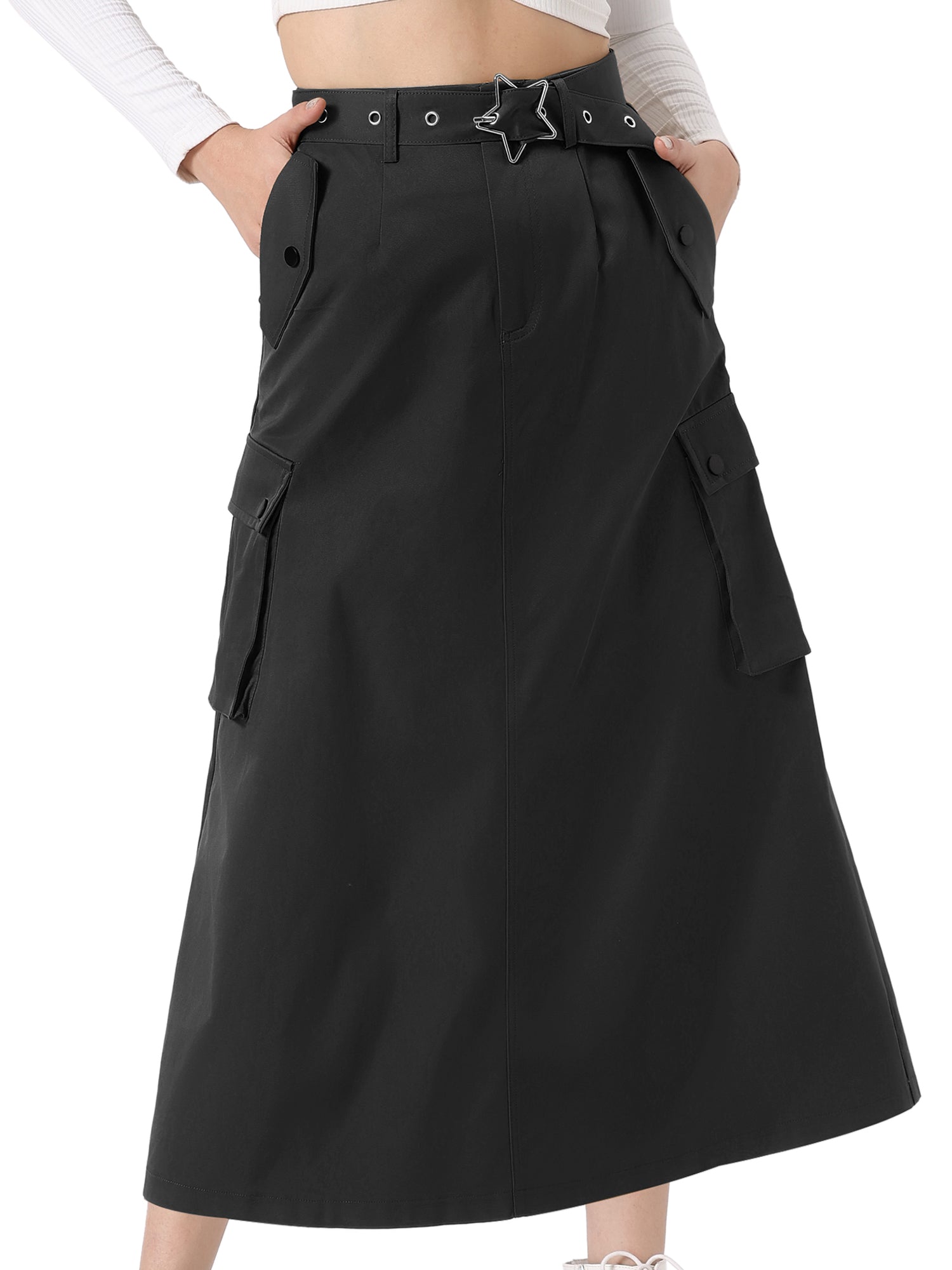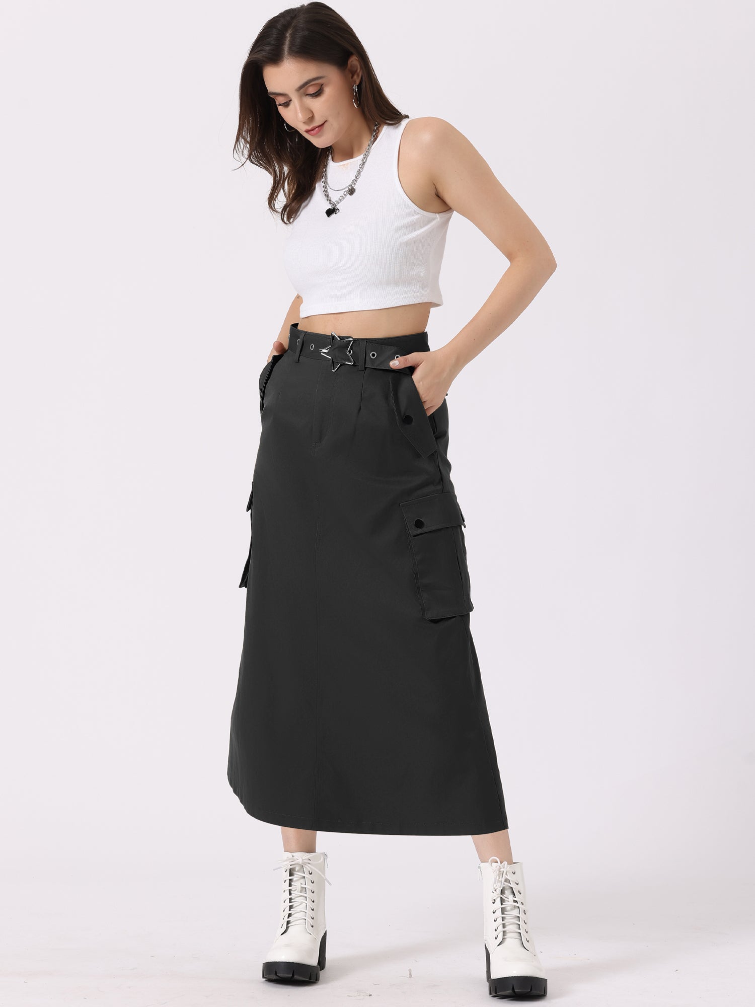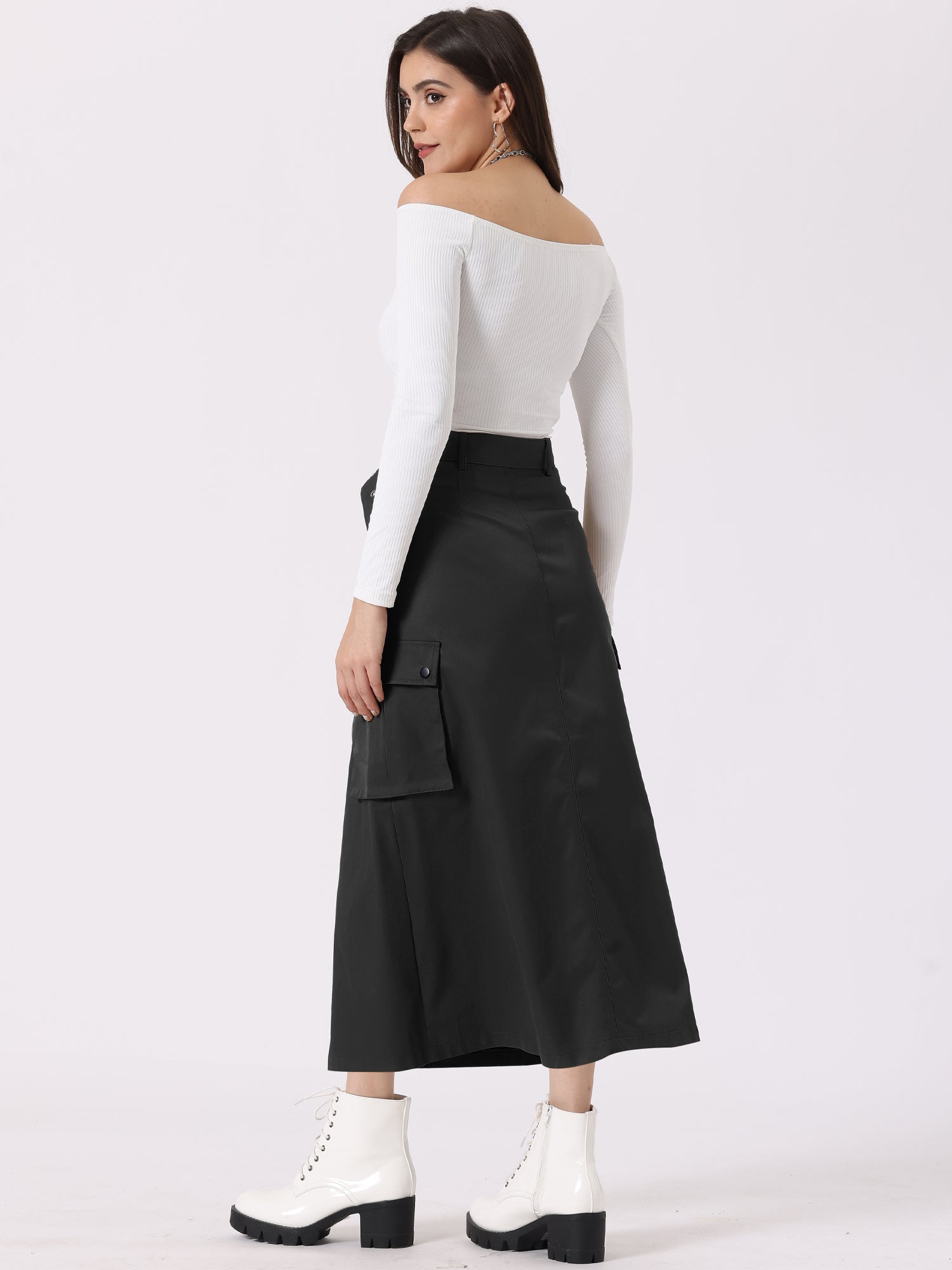 Falda larga recta de cintura alta con cremallera y bolsillos para mujer