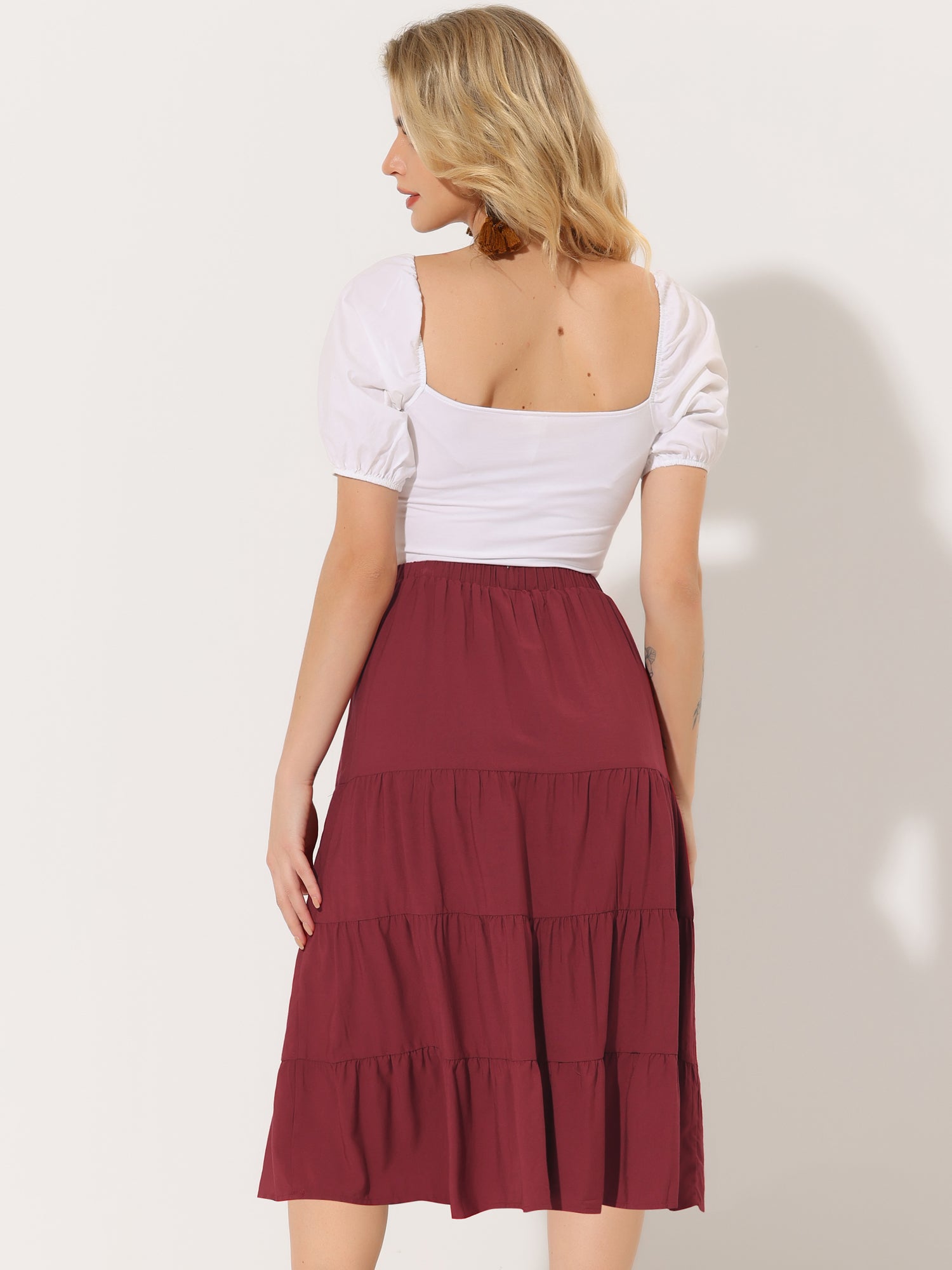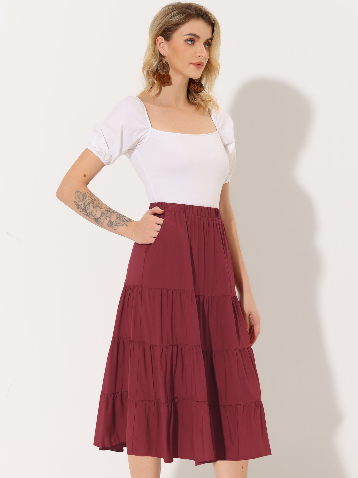 Faldas midi para mujer, estilo bohemio, plisadas, con vuelo, con cintura elástica, largas, con bolsillos