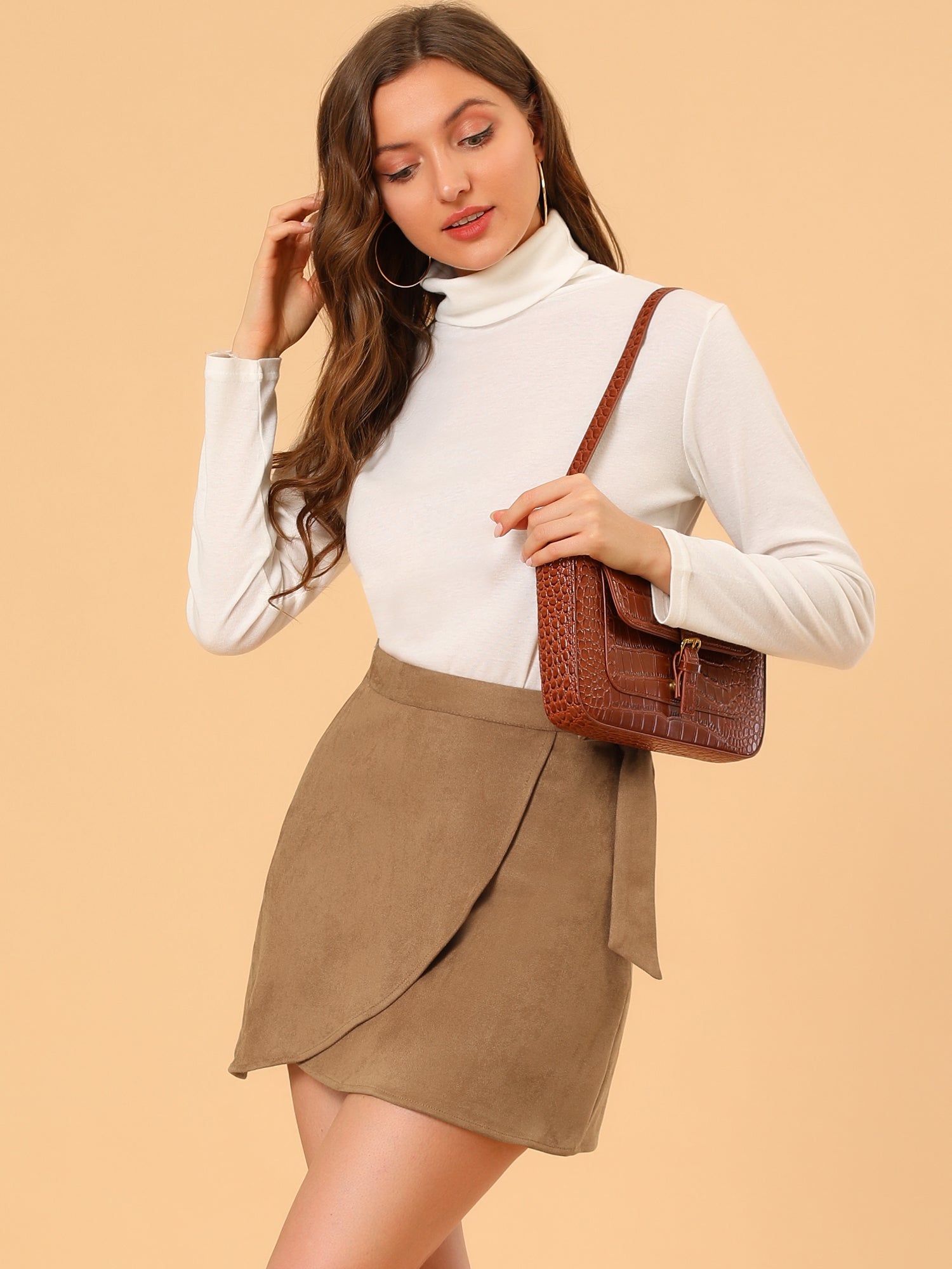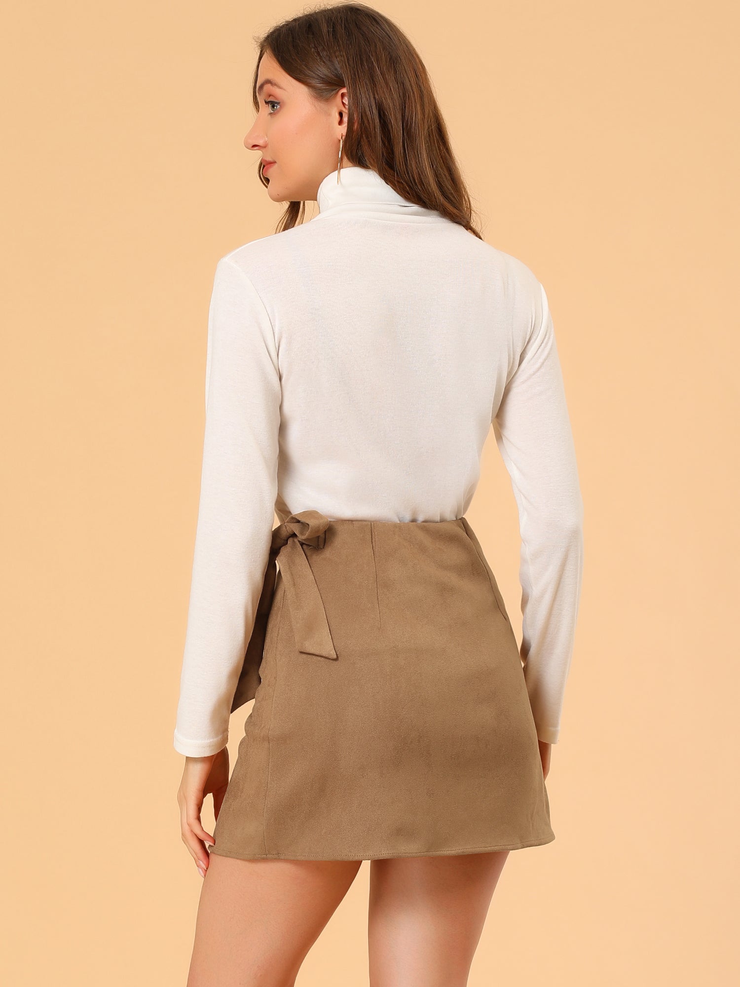 Faldas cortas cruzadas de ante sintético con lazo en la cintura para mujer