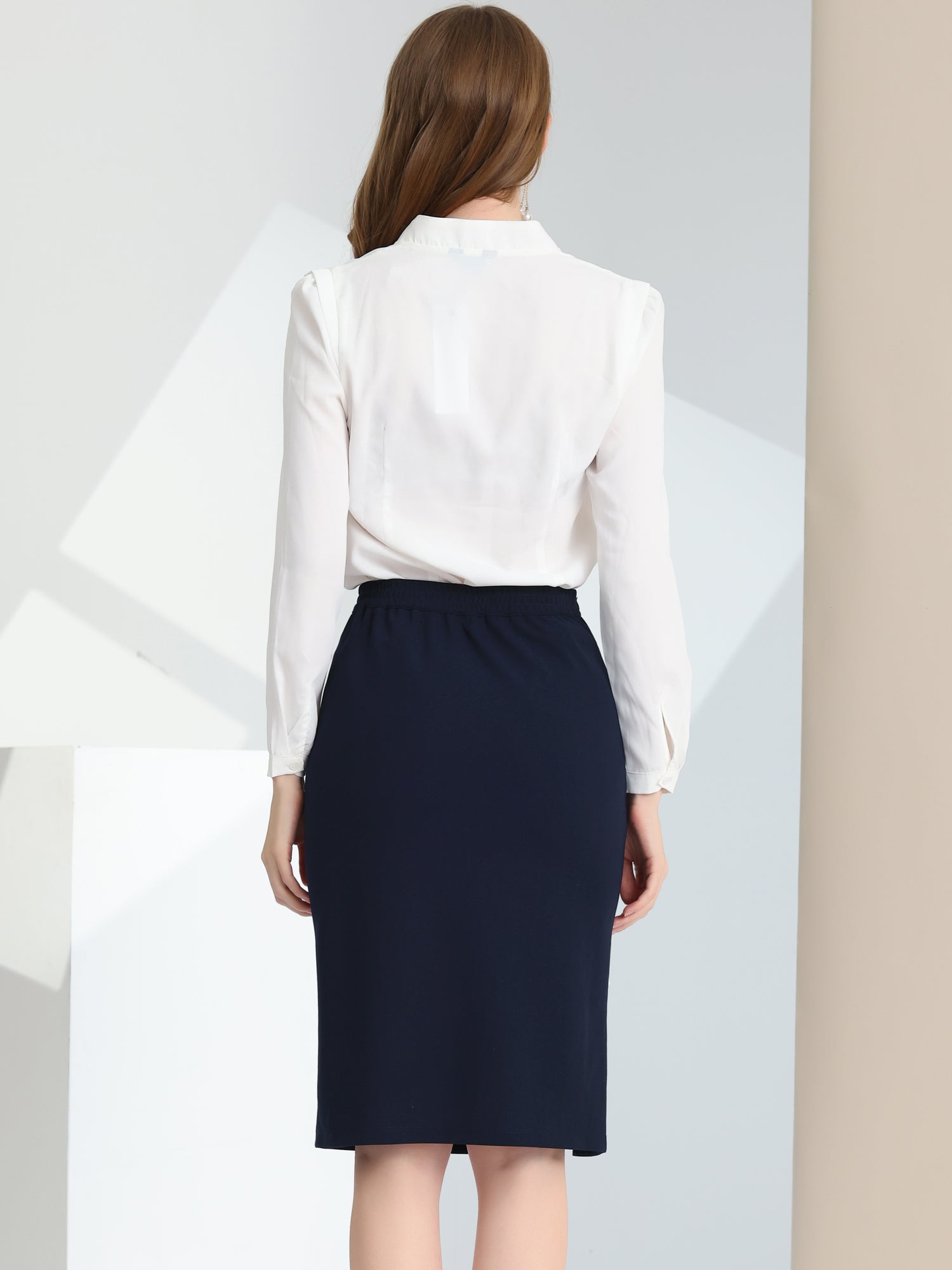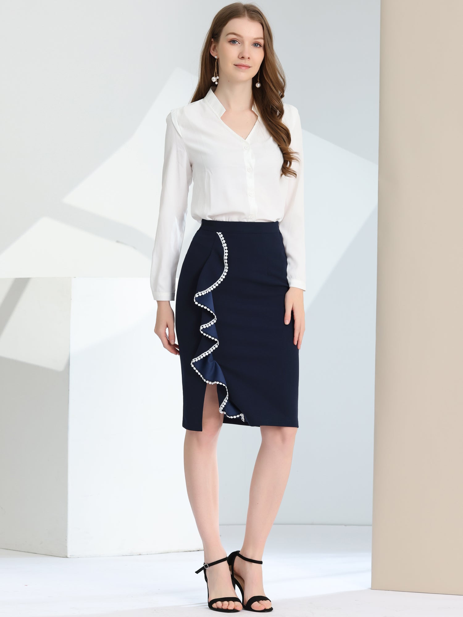 Falda tubo de cintura alta con volantes y abertura para oficina y trabajo para mujer