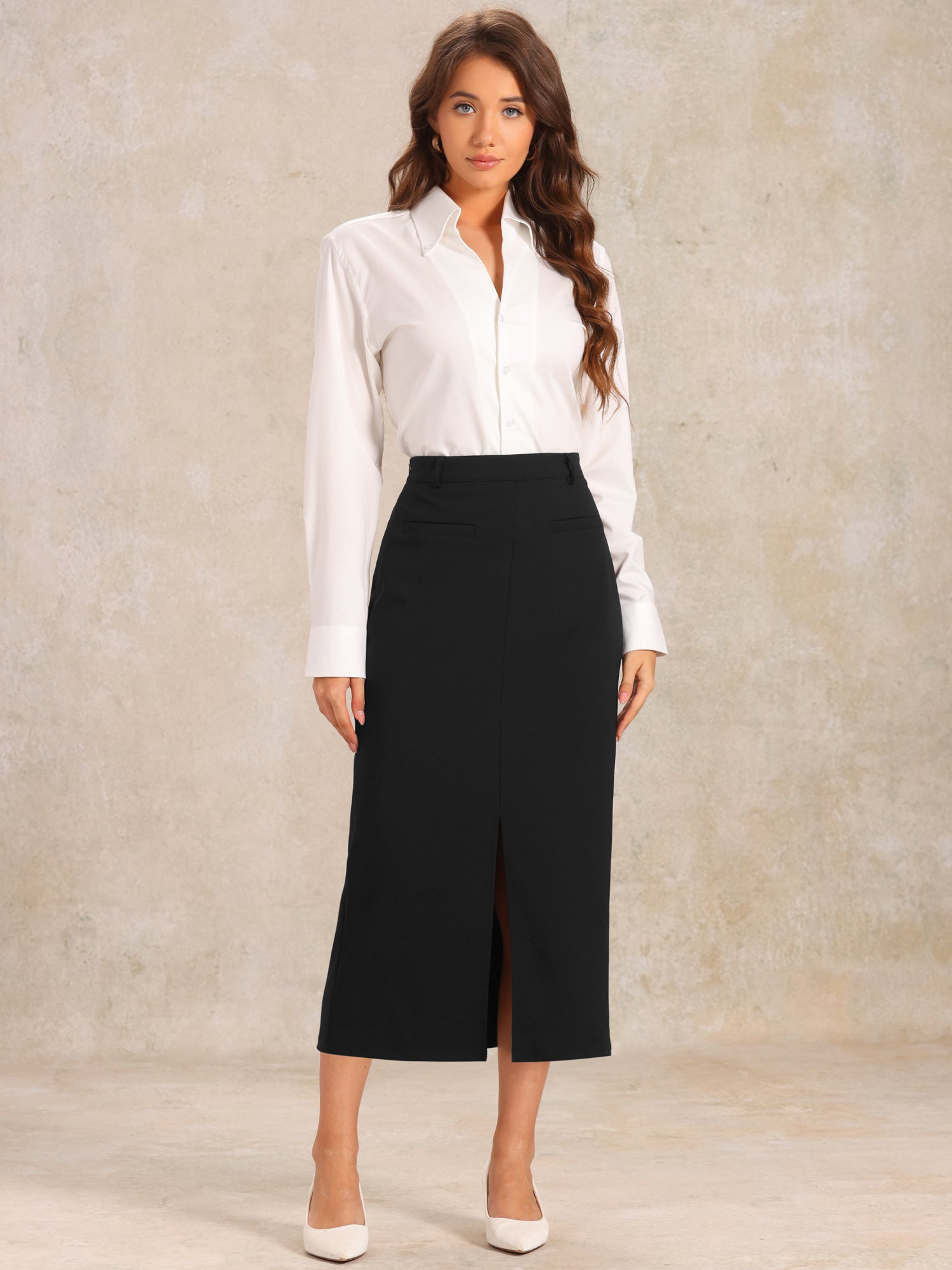 Falda tubo de cintura alta para mujer, para el trabajo, la oficina, con abertura en la parte media.