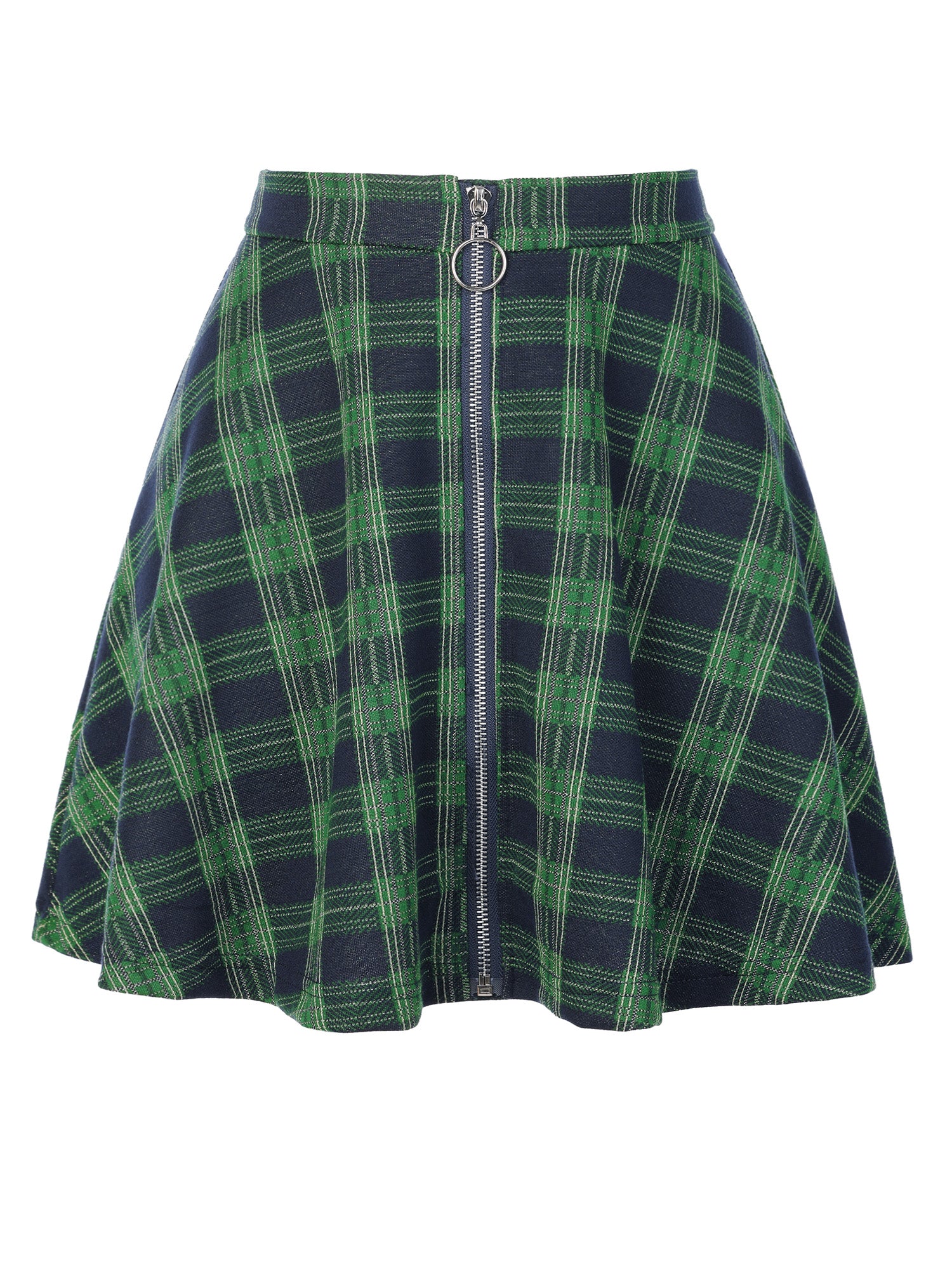 Minifalda acampanada informal de cintura alta con diseño a cuadros para mujer, con cremallera y corte A
